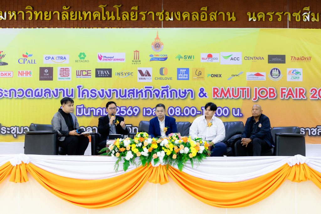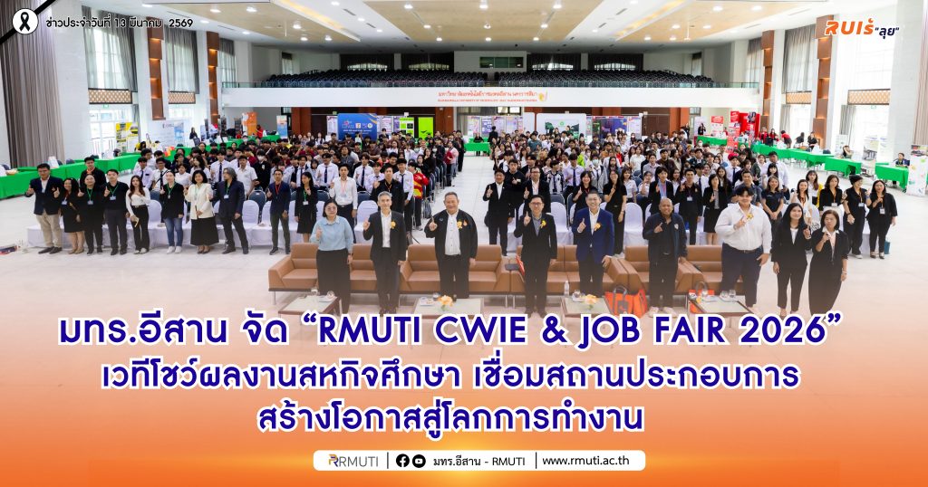 วันที่ 12 มีนาคม 2569 มหาวิทยาลัยเทคโนโลยีราชมงคลอีสาน นครราชสีมา จัดโครงการประกวดผลงานโครงงานสหกิจศึกษา ภายใต้งาน “RMUTI CWIE & JOB FAIR 2026” ณ หอประชุมวทัญญู ณ ถลาง มหาวิทยาลัยเทคโนโลยีราชมงคลอีสาน นครราชสีมา เพื่อเปิดเวทีให้นักศึกษาที่ผ่านการปฏิบัติงานสหกิจศึกษาได้นำเสนอผลงานและแลกเปลี่ยนประสบการณ์จากการทำงานจริง พร้อมเชื่อมโยงโอกาสการจ้างงานกับสถานประกอบการชั้นนำ โดยในพิธีเปิดโครงการได้รับเกียรติจาก รองศาสตราจารย์ ดร.โฆษิต ศรีภูธร อธิการบดีมหาวิทยาลัยเทคโนโลยีราชมงคลอีสาน เป็นประธานเปิดงาน โดยภายในงานมีกิจกรรมสำคัญประกอบด้วย การประกวดผลงานโครงงานสหกิจศึกษาในรูปแบบภาคบรรยายและภาคโปสเตอร์ การเสวนาจากผู้แทนสถานประกอบการ ศิษย์เก่า และอาจารย์นิเทศสหกิจศึกษา ตลอดจนการจัดบูธของสถานประกอบการในกิจกรรม “RMUTI CWIE & JOB FAIR 2026” เพื่อเปิดโอกาสให้นักศึกษาและบัณฑิตได้สมัครงานและเข้ารับการสัมภาษณ์กับบริษัทชั้นนำ