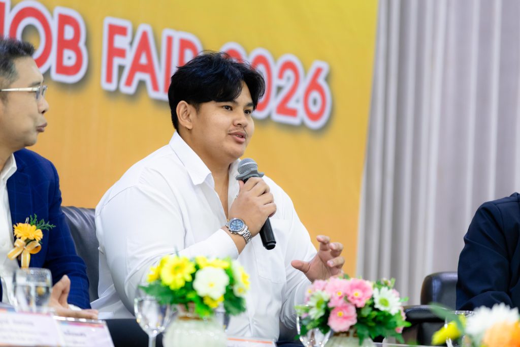 การเสวนาภายในงานจัดขึ้นในหัวข้อ “ก้าวแรกสู่โลกการทำงาน : เตรียมตัวอย่างไรให้พร้อมในยุคที่เปลี่ยนเร็ว” โดยได้รับเกียรติจากวิทยากรผู้ทรงคุณวุฒิ ได้แก่ คุณทัศไนย เหมือนเสน รองประธานกรรมการผู้จัดการ บริษัท จัดหางานจ๊อบบีเคเค ดอท คอม จำกัด, คุณสมบูรณ์ จันทร์เทพ ผู้ช่วยกรรมการผู้จัดการใหญ่ HR Business Partner บริษัท เบทาโกร จำกัด (มหาชน), คุณพุทธพงษ์ ด่านทองหลาง CEO & Founder บริษัท เอไอนิชั่นส์ จำกัด และ อาจารย์ ดร.ภาคภูมิ หมีเงิน อาจารย์ประจำสาขาระบบสารสนเทศ คณะบริหารธุรกิจ มหาวิทยาลัยเทคโนโลยีราชมงคลอีสาน ร่วมแลกเปลี่ยนมุมมองเกี่ยวกับทักษะที่จำเป็นต่อการทำงานในยุคปัจจุบัน และแนวทางการเตรียมความพร้อมของนักศึกษาในการก้าวสู่โลกอาชีพ