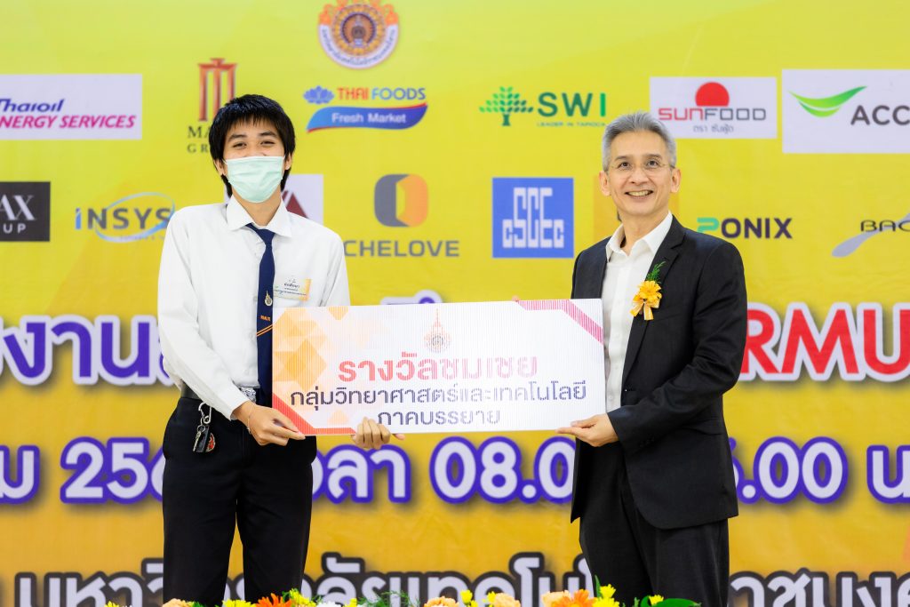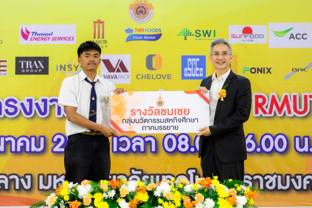 - รางวัลชนะเลิศ ได้แก่ ผลงาน “การออกแบบอุปกรณ์จับยึดตัวล็อกฝาครอบโปรงรถยนต์เพื่อควบคุมคุณภาพการประกอบ” โดย นายอนุชาติ เวียงสันเทียะ นักศึกษาสาขาวิชาวิศวกรรมการผลิต คณะวิศวกรรมศาสตร์และเทคโนโลยี