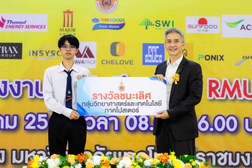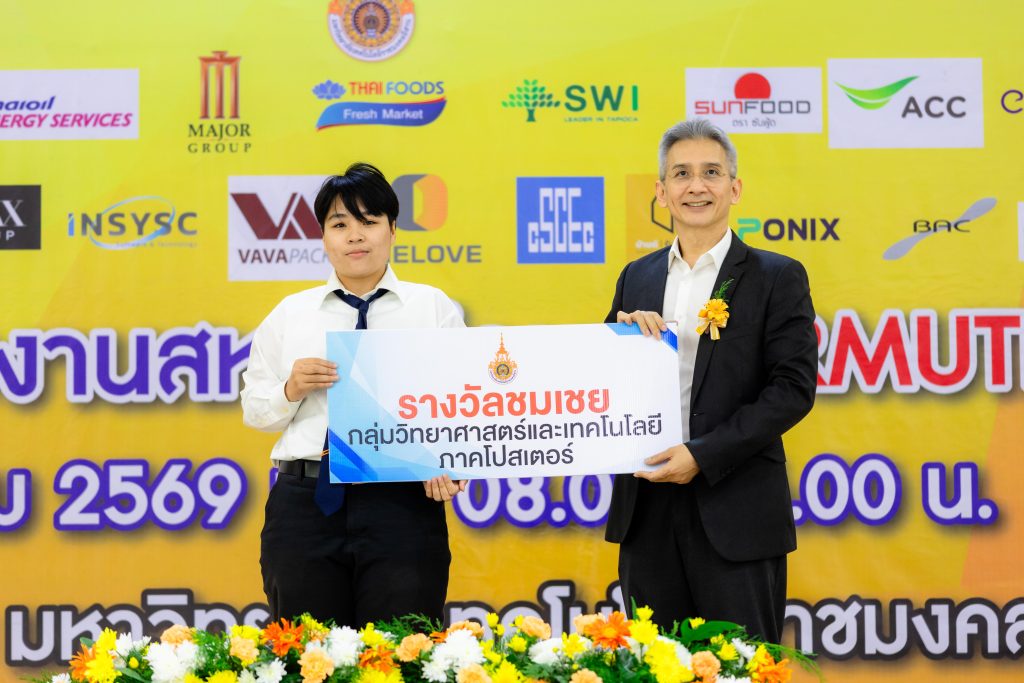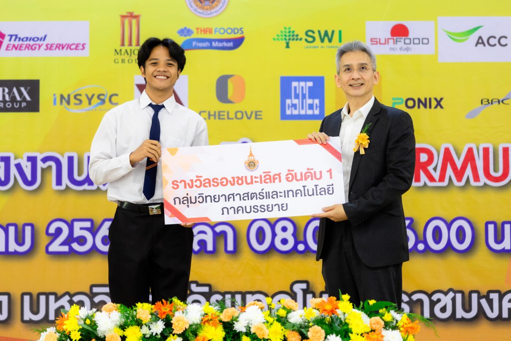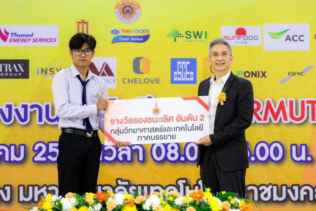 - รางวัลชมเชย ได้แก่ ผลงาน “ระบบสนับสนุนการคำนวณค่าไฟฟ้าอากาศยานด้วยปัญญาประดิษฐ์และการประมวลผลภาพ” โดย นายอภิวัฒน์ แสงขุนทด นักศึกษาสาขาวิชาวิศวกรรมซ่อมบำรุงอากาศยาน คณะระบบรางและการขนส่ง