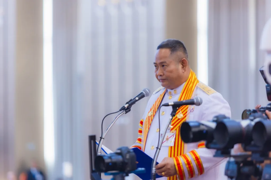 “ พระบาทสมเด็จพระเจ้าอยู่หัว ทรงพระกรุณาโปรดเกล้าโปรดกระหม่อม ให้ข้าพเจ้ามาปฏิบัติพระราชกรณียกิจแทนพระองค์ ในพิธีพระราชทานปริญญาบัตรของมหาวิทยาลัยเทคโนโลยีราชมงคลอีสาน ประจำปีการศึกษา 2566 ในวันนี้. ขอแสดงความชื่นชมกับผู้ทรงคุณวุฒิและบัณฑิตทุกคน ที่ได้รับเกียรติและความสำเร็จ. ผู้สำเร็จการศึกษาขั้นปริญญาแล้ว เรียกกันว่า บัณฑิต เพราะถือเป็นผู้ทรงความรู้ ผู้มีปัญญา. จึงนับเป็นโอกาสอันดี ที่ท่านทั้งหลายจะได้ทบทวนความหมายของการเป็นบัณฑิต ให้เข้าใจชัดและถูกต้องตรงกัน. ที่ว่าบัณฑิตเป็นผู้ทรงความรู้นั้น มิได้หมายถึงความรู้ทางวิชาการแต่อย่างเดียว หากยังหมายถึงความรู้ผิดชอบชั่วดีด้วย. ส่วนที่ว่าบัณฑิตเป็นผู้มีปัญญา ก็หมายความว่าจะต้องดำเนินชีวิตด้วยปัญญา กล่าวคือ ไม่ว่าจะประพฤติปฏิบัติการใด ต้องใช้ปัญญาพิจารณาก่อนเสมอ แล้วคิด พูด ทำ เฉพาะสิ่งที่ถูกต้อง เหมาะสม ก่อให้เกิดประโยชน์ทั้งในระยะสั้นและระยะยาว. ผู้มีความรู้และปัญญาตามความหมายดังกล่าวนี้ ย่อมได้ชื่อว่าเป็นบัณฑิตที่แท้จริง. จึงหวังเป็นอย่างยิ่งว่า บัณฑิตทุกคนจะได้นำไปพิจารณา และฝึกฝนอบรมตนให้เป็นบัณฑิตแท้.