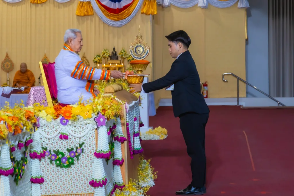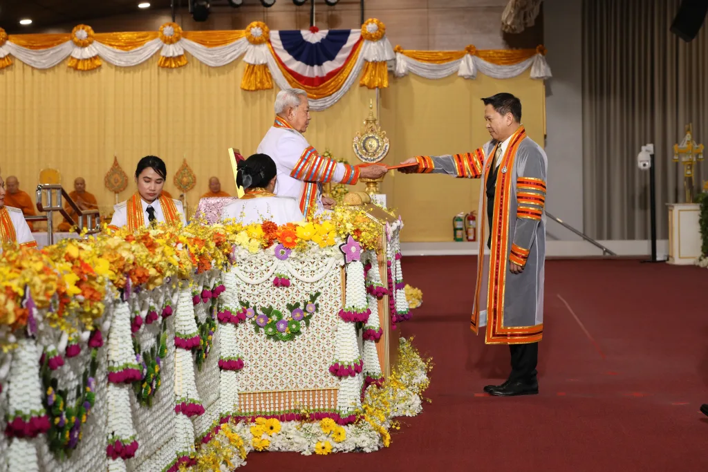 ในพระปรมาภิไธยพระบาทสมเด็จพระเจ้าอยู่หัว ขออวยพรให้บัณฑิตใหม่ และทุกท่านที่มาร่วมในพิธีนี้ มีความสุขความเจริญ และความสำเร็จสมบูรณ์ทุกประการทั่วกัน.