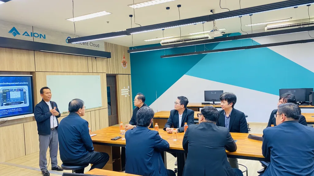วันที่ 15 ธันวาคม พ.ศ. 2568 มหาวิทยาลัยเทคโนโลยีราชมงคลอีสาน โดย รองศาสตราจารย์ ดร.โฆษิต ศรีภูธร อธิการบดี มอบหมายให้ ผู้ช่วยศาสตราจารย์ ดร.เอนก เจริญภักดี รองอธิการบดีฝ่ายยุทธศาสตร์ นโยบายและแผน กำกับดูแลยุทธศาสตร์ด้านยานยนต์ไฟฟ้า นำคณะผู้บริหาร ได้แก่ ผู้ช่วยศาสตราจารย์ชูชัย ต.ศิริวัฒนา ที่ปรึกษาอธิการบดี อาจารย์ ดร.ประจวบ อินระวงค์ ผู้ช่วยอธิการบดี ปฏิบัติหน้าที่ผู้อำนวยการสถาบันยานยนต์ไฟฟ้า มทร.อีสาน และผู้ช่วยศาสตราจารย์ ดร.ติณกร ภูวดิน รองผู้อำนวยการสถาบันยานยนต์ไฟฟ้าฝ่ายบริหารและแผน ให้การต้อนรับมหาวิทยาลัยราชภัฏมหาสารคาม นำโดย อาจารย์ ดร.มาวิน ปูนอน ผู้ช่วยอธิการบดี ผู้ช่วยศาสตราจารย์ ดร.วิเชษฐ์ พลหาญ คณบดีคณะวิทยาศาสตร์และเทคโนโลยี อาจารย์ชาญวิทย์ แก้วอาษา ผู้ช่วยคณบดีคณะวิศวกรรมศาสตร์ ฝ่ายกิจการพิเศษ ผู้ช่วยศาสตราจารย์ ดร.วสันต์ ปินะเต ผู้อำนวยการสถาบันวิจัยและพัฒนา พร้อมคณะผู้บริหารและอาจารย์ ในโอกาสเยี่ยมชมและศึกษาดูงานการขับเคลื่อนยุทธศาสตร์ด้านยานยนต์ไฟฟ้า ณ สถาบันยานยนต์ไฟฟ้า RMUTI-CHELOVE EV TRAINING CENTER มหาวิทยาลัยเทคโนโลยีราชมงคลอีสาน นครราชสีมา