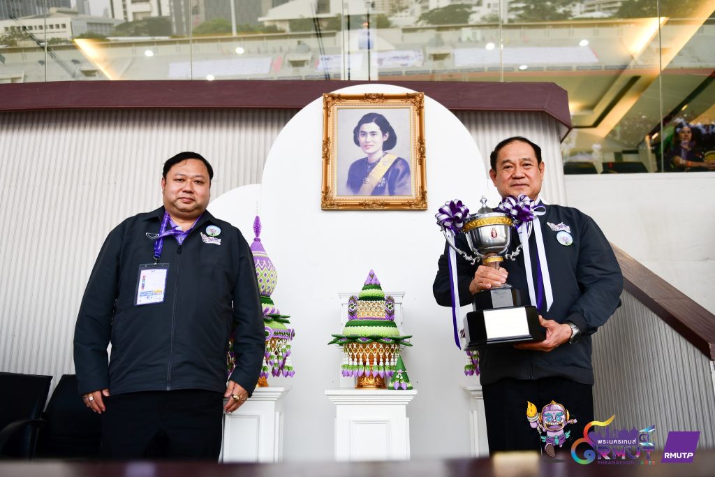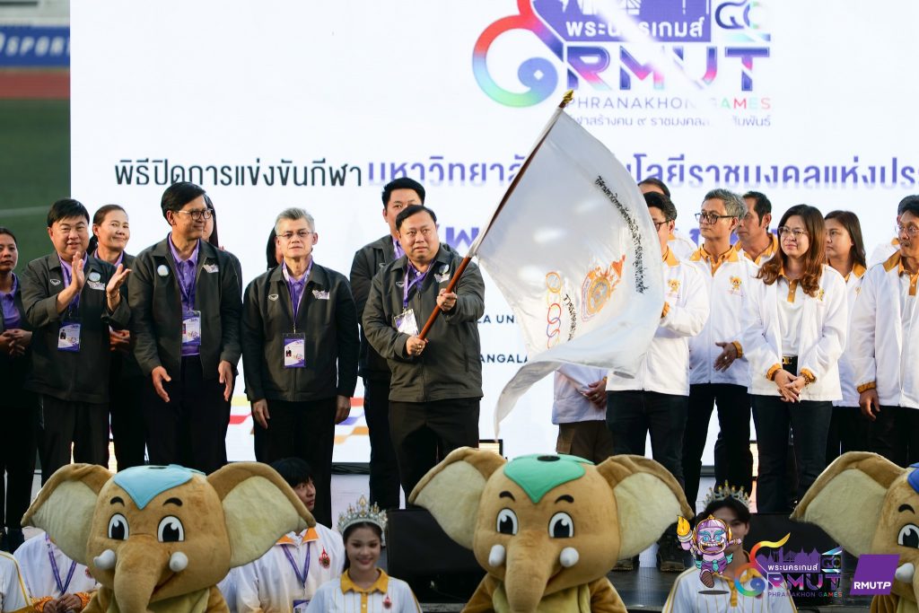 จากนั้น ดร.ณัฐวรพล รัชสิริวัชรบุล เป็นประธานในพิธีส่งมอบธงประจำการแข่งขันให้กับ ผู้ช่วยศาสตราจารย์ สัญญา คำจริง รองอธิการบดีมหาวิทยาลัยเทคโนโลยีราชมงคลสุวรรณภูมิ เพื่อเข้ารับธงเป็นเจ้าภาพในการแข่งขันกีฬามหาวิทยาลัยเทคโนโลยีราชมงคลแห่งประเทศไทย ครั้งที่ 41 ต่อไป ทั้งนี้ “พระนครเกมส์” นับเป็นอีกหนึ่งเวทีแห่งความภาคภูมิใจของชาวราชมงคล ที่สะท้อนพลังความสามัคคี มิตรภาพ และน้ำใจนักกีฬา ผ่านการแข่งขันกีฬาอย่างสร้างสรรค์ตลอดทั้งรายการ