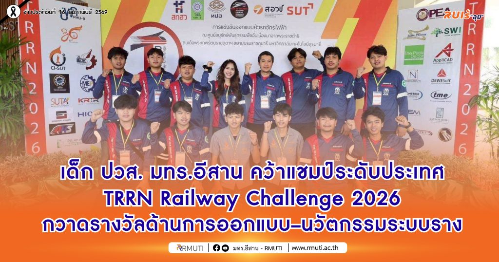 มหาวิทยาลัยเทคโนโลยีราชมงคลอีสาน ขอแสดงความยินดีกับนักศึกษาระดับประกาศนียบัตรวิชาชีพชั้นสูง (ปวส.) จาก โปรแกรมวิชาช่างเทคนิคระบบขนส่งทางราง และ โปรแกรมวิชาช่างอิเล็กทรอนิกส์ วิทยาลัยนวัตกรรมวิชาชีพ คณะวิศวกรรมศาสตร์และเทคโนโลยี ที่สร้างผลงานโดดเด่นในการแข่งขัน TRRN Railway Challenge 2026 ซึ่งเป็นเวทีการแข่งขันออกแบบหัวรถจักรไฟฟ้าระดับประเทศ โดยสามารถแสดงศักยภาพด้านวิศวกรรม นวัตกรรม การออกแบบระบบราง ตลอดจนความสามารถด้านการทำงานเป็นทีมและการนำเสนอผลงานอย่างเป็นมืออาชีพ จนคว้ารางวัลสูงสุดของการแข่งขันได้อย่างภาคภูมิ