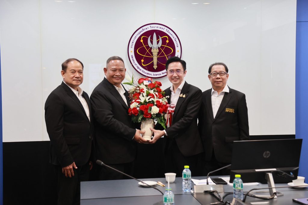 วันที่ 16 เมษายน พ.ศ. 2569 รศ.ดร.โฆษิต ศรีภูธร อธิการบดี มทร.อีสาน ประธานที่ประชุมอธิการบดีมหาวิทยาลัยเทคโนโลยีราชมงคล (ทปอ.มทร.) รศ.ดร.อุดมวิทย์ ไชยสกุลเกียรติ อธิการบดี มทร.รัตนโกสินทร์ และรศ.ดร.สมหมาย ผิวสะอาด อธิการบดี มทร.ธัญบุรี เป็นผู้แทนจากที่ประชุมอธิการบดีมหาวิทยาลัยเทคโนโลยีราชมงคล (ทปอ.มทร.) พร้อมด้วย ผู้แทนจากที่ประชุมอธิการบดี มหาวิทยาลัยราชภัฏ (ทปอ.มรภ.) และผู้แทนจากที่ประชุมอธิการบดีแห่งประเทศไทย (ทปอ.) เข้าพบ ศ.ดร.ยศชนัน วงศ์สวัสดิ์ รองนายกรัฐมนตรี และรัฐมนตรีว่าการกระทรวงการอุดมศึกษา วิทยาศาสตร์ วิจัยและนวัตกรรม ณ ห้องรับรองสำนักงานรัฐมนตรี กระทรวงการอุดมศึกษา วิทยาศาสตร์ วิจัยและนวัตกรรม กรุงเทพมหานคร