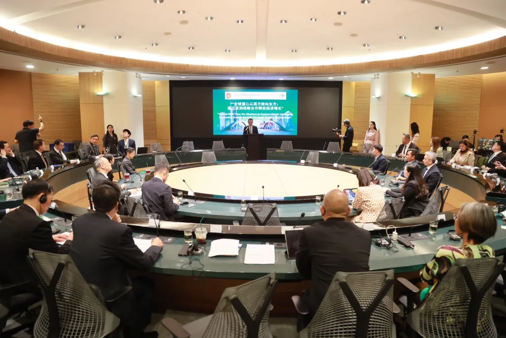 วันที่ 15 พฤษภาคม 2568 มหาวิทยาลัยเทคโนโลยีราชมงคลอีสาน โดย รองศาสตราจารย์ ดร.โฆษิต ศรีภูธร อธิการบดี มทร.อีสาน พร้อมด้วย ผู้ช่วยศาสตราจารย์ ดร.ระบิล พ้นภัย รองอธิการบดีฝ่ายวิชาการและวิเทศสัมพันธ์ และ ผู้ช่วยศาสตราจารย์ ดร.เอนก เจริญภักดี รองอธิการบดีฝ่ายยุทธศาสตร์ นโยบายและแผน เข้าร่วมโครงการส่งเสริมความสัมพันธ์กับภาคส่วนในมณฑลกวางตุ้งเพื่อพัฒนาลู่ทางความร่วมมือทางเศรษฐกิจ EEC – GBA Global Shift from the Western to Eastern World: Unlocking Economic Growth through Strategic Asian Collaboration โดยมี คุณพิพิธ เอนกนิธิ ผู้จัดการใหญ่ ธนาคารกสิกรไทย, คุณภัทรพงศ์ กัณหสุวรรณ รองผู้จัดการใหญ่ ธนาคารกสิกรไทย และคุณกาจฐิติ วิวัธวานนท์ กงสุลใหญ่ ณ นครกว่างโจว กล่าวต้อนรับ ณ ธนาคารกสิกรไทย อาคารราษฎร์บูรณะ
