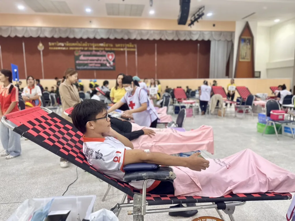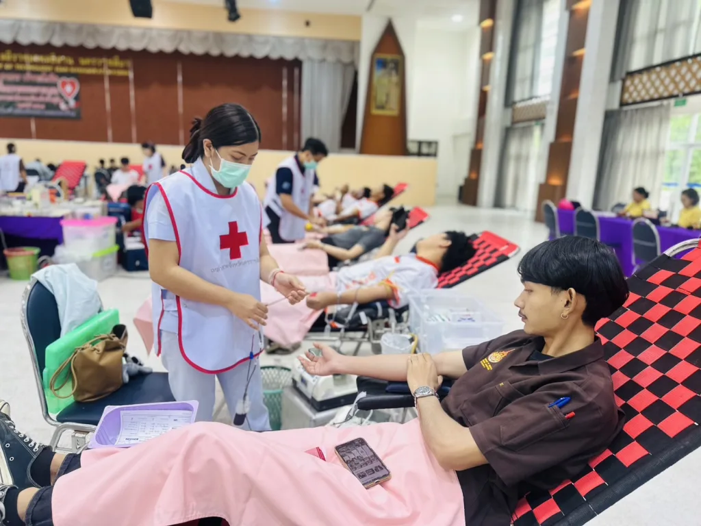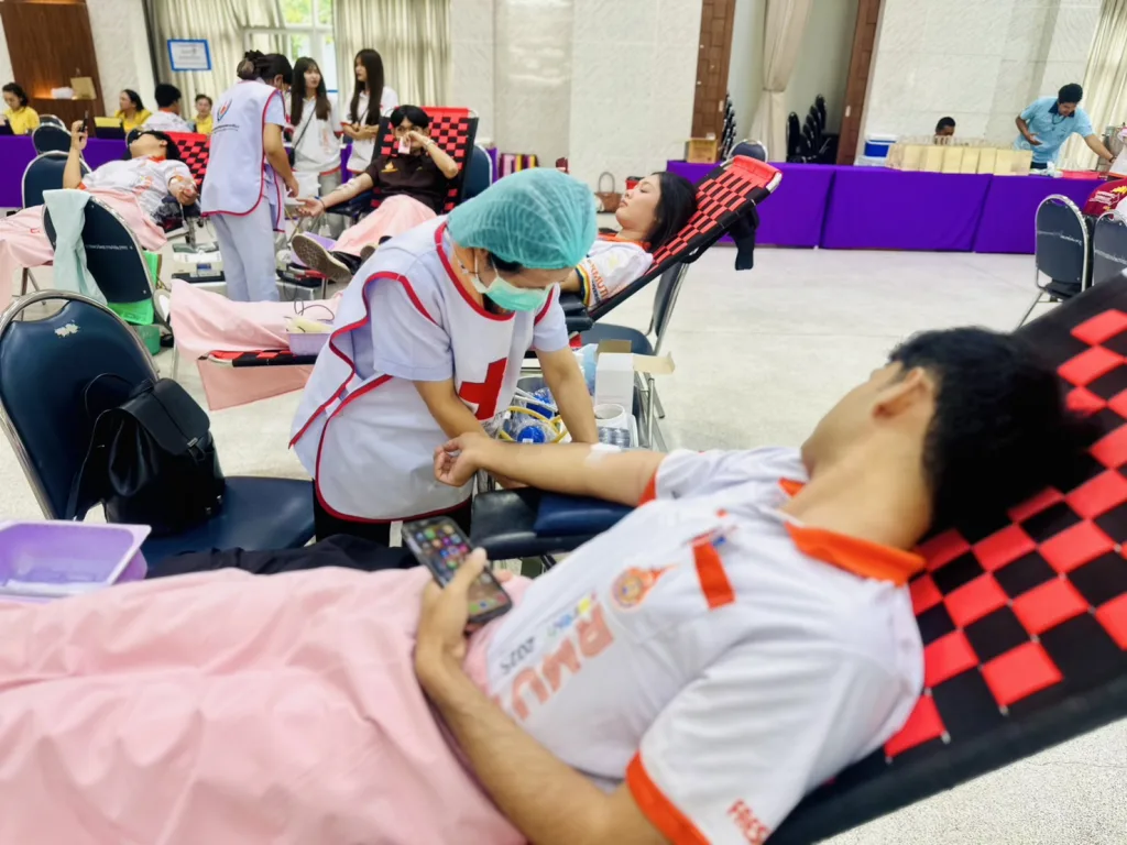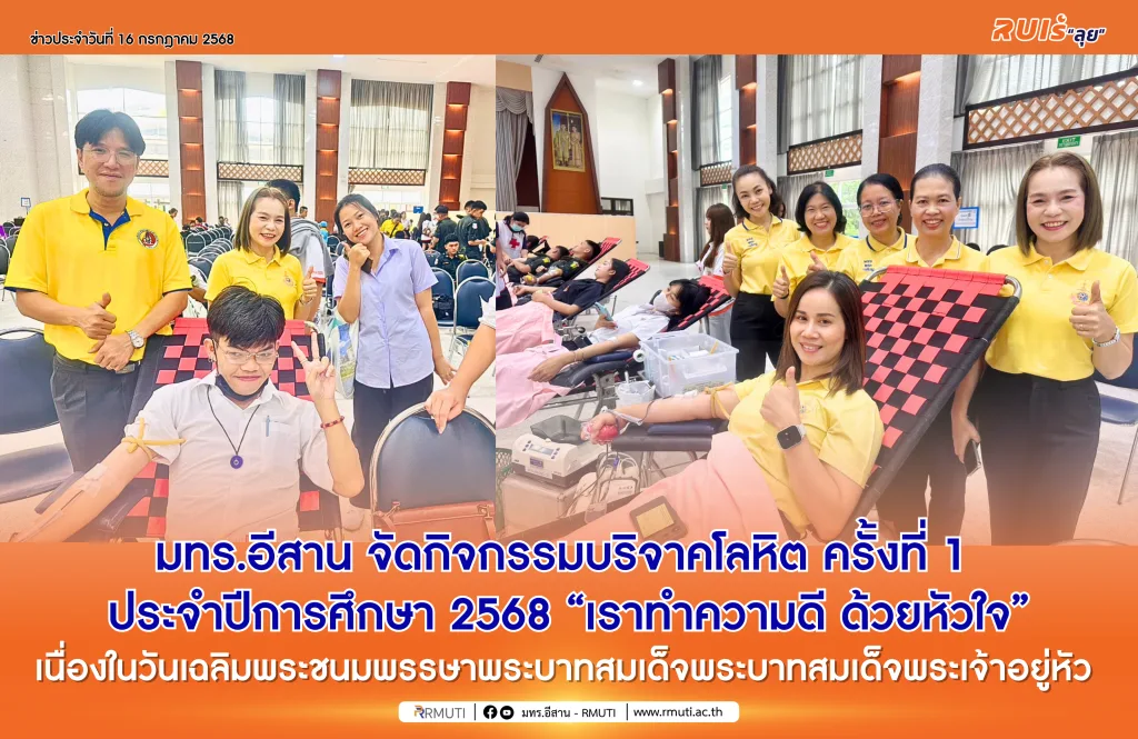 วันที่ 16 กรกฎาคม 2568 มหาวิทยาลัยเทคโนโลยีราชมงคลอีสาน โดย รองศาสตราจารย์ ดร.โฆษิต ศรีภูธร อธิการบดี มทร.อีสาน มอบหมายให้ อาจารย์สรวิศ ต.ศิริวัฒนา รองอธิการบดีฝ่ายกิจการนักศึกษาและศิษย์เก่าสัมพันธ์ และ กองพัฒนานักศึกษา โดย นางสาวสุวรรณี ทนงสำโรง พลเสน ผู้อำนวยการกองพัฒนานักศึกษา ร่วมกับ เหล่ากาชาดจังหวัดนครราชสีมา และ โรงพยาบาลมหาราชนครราชสีมา จัดกิจกรรมบริจาคโลหิต ครั้งที่ 1 ประจำปีการศึกษา 2568 “เราทำความดี ด้วยหัวใจ” เนื่องในวันเฉลิมพระชนมพรรษาพระบาทสมเด็จพระบาทสมเด็จพระเจ้าอยู่หัว ณ หอประชุมวทัญญู ณ ถลาง มทร.อีสาน นครราชสีมา ทั้งนี้ มีคณาจารย์ เจ้าหน้าที่ และนักศึกษา เข้าร่วมบริจาคเลือดเป็นจำนวนมาก