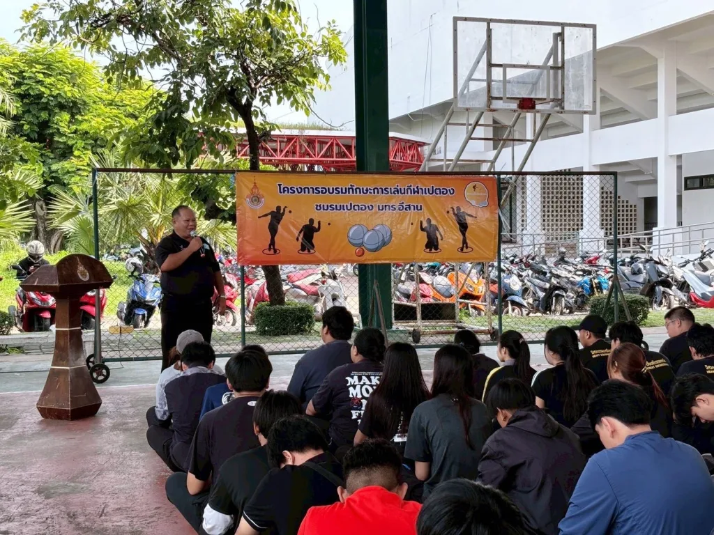 เวลา 09.30 น. ชมรมเปตอง มทร.อีสาน จัดโครงการอบรมทักษะการเล่นกีฬาเปตอง เพื่อให้ความรู้เรื่องกฎ กติกา วิธีการเล่นกีฬาเปตอง รวมถึงการให้ความรู้เรื่องระเบียบ ข้อบังคับ ของชมรมเปตอง ณ ลานมรกต มทร.อีสาน นครราชสีมา โดยมี ผศ.ดร.สมชาติ ดีอุดม นายเทพรัตน์ โสนรินทร์ ที่ปรึกษาชมรม และนางสาวสลิลทิพย์ สีฝ่าย ประธานชมรม พร้อมด้วยกรรมการและสมาชิกชมรมเข้าร่วมจำนวนกว่า 70 คน