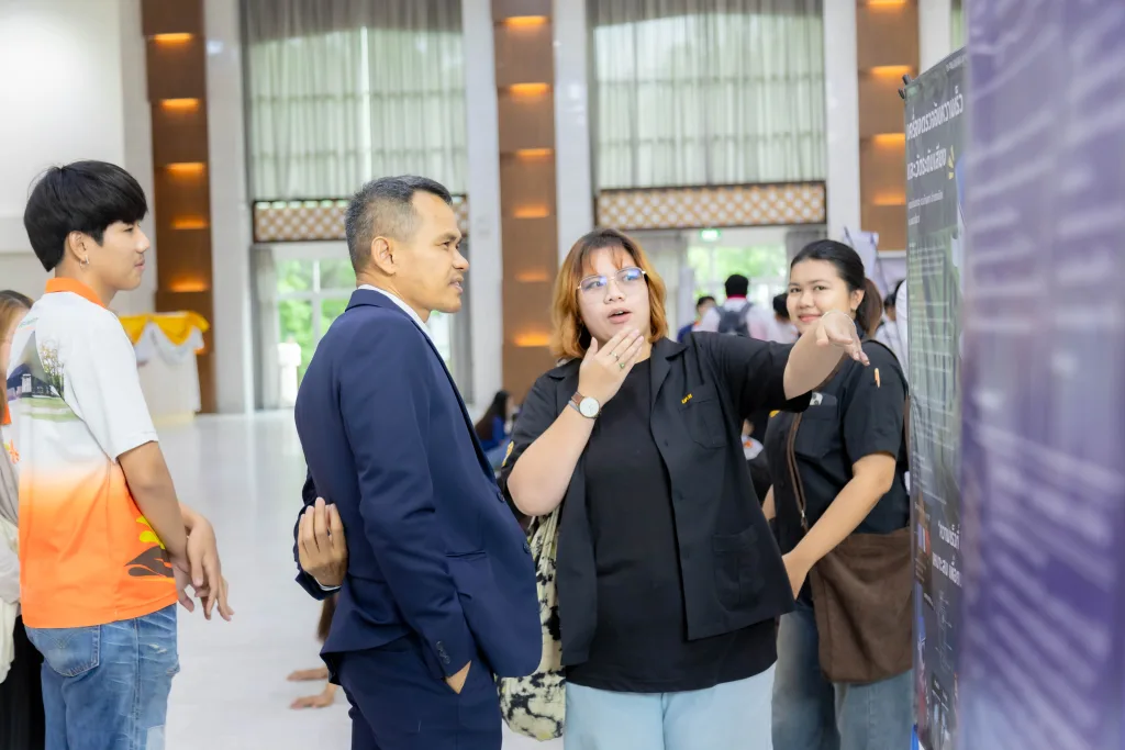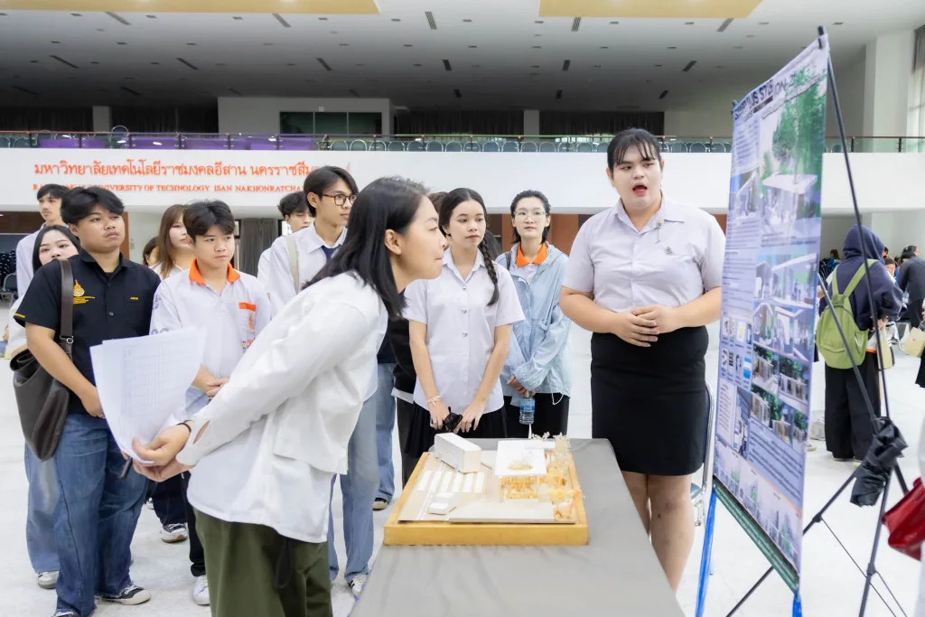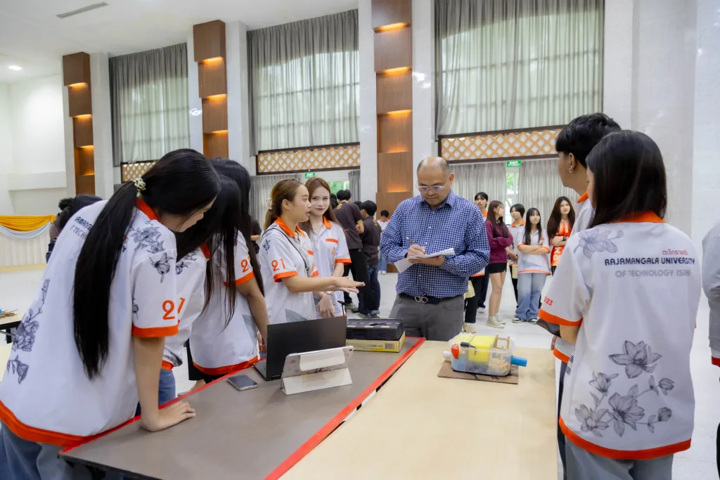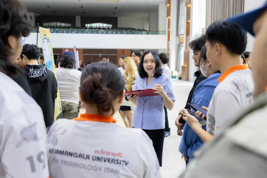 วันที่ 16 ตุลาคม 2568 สำนักศึกษาทั่วไป มหาวิทยาลัยเทคโนโลยีราชมงคลอีสาน จัดโครงการประกวดสิ่งประดิษฐ์ นวัตกรรม และเทคโนโลยี รายวิชา “ชุมชนนวัตกรรมสร้างสรรค์” ณ หอประชุมวทัญญู ณ ถลาง มหาวิทยาลัยเทคโนโลยีราชมงคลอีสาน นครราชสีมา โดย รองศาสตราจารย์ ดร.โฆษิต ศรีภูธร รักษาราชการแทน อธิการบดีมหาวิทยาลัยเทคโนโลยีราชมงคลอีสาน มอบหมายให้ ผู้ช่วยศาสตราจารย์ ดร.สุรัตน์ วรรณศรี คณบดีสถาบันสหสรรพศาสตร์ เป็นประธานในพิธีเปิดโครงการ ทั้งนี้ กิจกรรมดังกล่าวจัดขึ้นเพื่อเป็นเวทีให้นักศึกษาได้แสดงศักยภาพด้านการคิดค้นและสร้างสรรค์สิ่งประดิษฐ์หรือนวัตกรรมที่สามารถนำไปใช้ประโยชน์ได้จริงในชุมชน ตลอดจนเป็นการส่งเสริมทักษะการบูรณาการความรู้จากหลากหลายสาขาวิชาเพื่อขับเคลื่อนสังคมเชิงสร้างสรรค์อย่างยั่งยืน