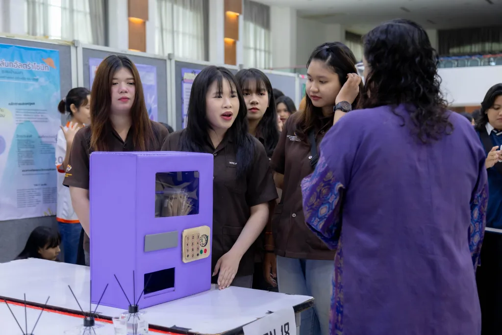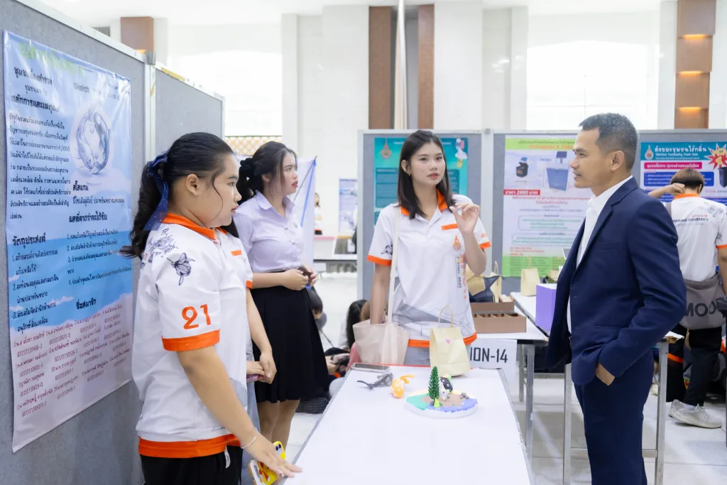 ภายในงานมีการนำเสนอผลงานสิ่งประดิษฐ์ นวัตกรรม และเทคโนโลยี จากนักศึกษารายวิชา “ชุมชนนวัตกรรมสร้างสรรค์” โดยได้รับเกียรติจากคณะกรรมการผู้ทรงคุณวุฒิร่วมตัดสินผลงาน ได้แก่