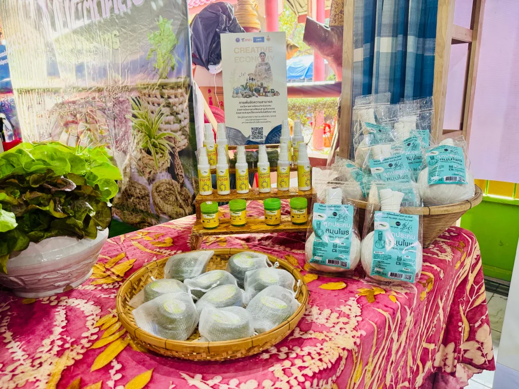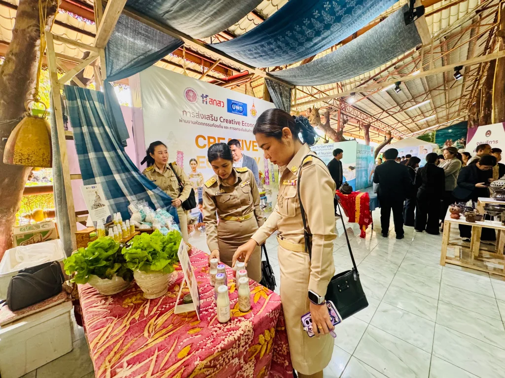 ในโอกาสนี้ มหาวิทยาลัยเทคโนโลยีราชมงคลอีสาน ได้นำเสนอผลงานวิจัยและนวัตกรรมที่ได้รับการสนับสนุนจากกองทุนวิจัย ววน. ซึ่งมุ่งเน้นการส่งเสริมเศรษฐกิจสร้างสรรค์ (Creative Economy) ผ่านงานหัตถกรรมท้องถิ่น และการยกระดับสินค้าเกษตร เพื่อสร้างมูลค่าเพิ่มและเสริมสร้างความเข้มแข็งให้กับเศรษฐกิจฐานรากของจังหวัดนครราชสีมา จำนวนหลายผลงาน ได้แก่