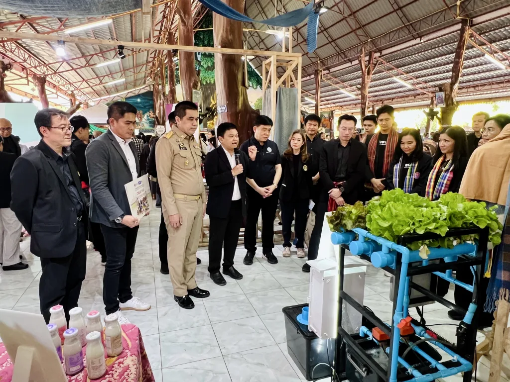 วันที่ 15 ธันวาคม 2568 มหาวิทยาลัยเทคโนโลยีราชมงคลอีสาน โดย รองศาสตราจารย์ ดร.โฆษิต ศรีภูธร อธิการบดี มอบหมายให้ รองศาสตราจารย์ ดร.บัณฑิต กฤตาคม รองอธิการบดีฝ่ายวิจัย พัฒนานวัตกรรม และบริการวิชาการ พร้อมคณะผู้บริหารสถาบันวิจัยและพัฒนา ได้แก่ อาจารย์ ดร.ชยกฤต เพชรช่วย รองผู้อำนวยการฝ่ายบริหารงานทั่วไปสถาบันวิจัยและพัฒนา, ผู้ช่วยศาสตราจารย์จิรวัฒน์ จันทร์สว่าง รองผู้อำนวยการฝ่ายบริการวิชาการสถาบันวิจัยและพัฒนา, อาจารย์ ดร.สิริกานต์ ไชยสิทธิ์ ผู้ช่วยผู้อำนวยการสถาบันวิจัยและพัฒนา ให้การต้อนรับ ศาสตราจารย์ ดร.ศุภชัย ปทุมนากุล ปลัดกระทรวงการอุดมศึกษา วิทยาศาสตร์ วิจัยและนวัตกรรม เป็นประธานการติดตามการดำเนินงาน โดยมี นายอนุพงศ์ สุขสมนิตย์ ผู้ว่าราชการจังหวัดนครราชสีมา กล่าวต้อนรับ ซึ่งหน่วยงานที่เกี่ยวข้อง ภาคีเครือข่ายและประชาชนในพื้นที่เข้าร่วมกิจกรรมอย่างคับคั่ง ณ วัดหลุ่งประดู่ อำเภอห้วยแถลง จังหวัดนครราชสีมา