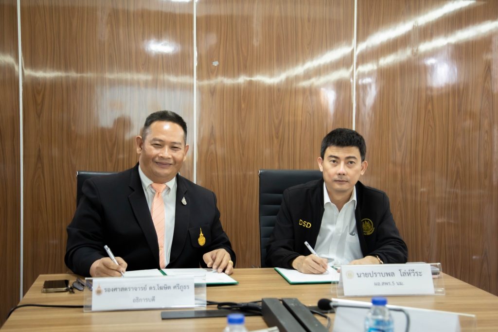 รองอธิการบดีฝ่ายวิจัย พัฒนานวัฒกรรม และบริการวิชาการ นางสาวจุฬาลักษณ์ พลเสนา ผู้อำนวยการสถาบันบริการวิชาการ แห่ง มทร.อีสาน ร่วมลงนามและเป็นสักขีพยานในบันทึกข้อตกลงความร่วมมือว่าด้วยการส่งเสริมการพัฒนาฝีมือแรงงาน ทักษะอาชีพ ให้แก่แรงงานทุกระดับ ระหว่าง สถาบันพัฒนาฝีมือแรงงาน 5 นครราชสีมา กับ มหาวิทยาลัยเทคโนโลยีราชมงคลอีสาน โดยมี นายปราบพล โล่ห์วีระ ผู้อำนวยการสถาบันพัฒนาฝีมือแรงงาน 5 นครราชสีมา และนายไพฑูรย์ ถิ่นสูง ผู้อำนวยการกลุ่มงานมาตรฐานฝีมือแรงงาน ให้เกียรติร่วมลงนามในความร่วมมือดังกล่าว ณ ห้องประชุมแคนา 1 ชั้น 3 อาคารสำนักงานอธิการบดี (อาคาร 19)