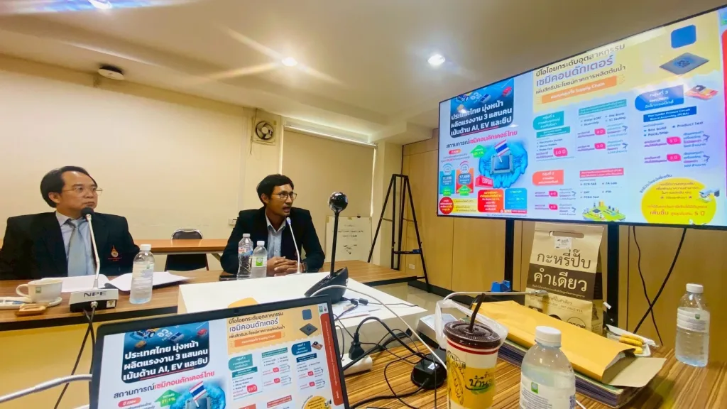 ในการนี้ ผู้ช่วยศาสตราจารย์ ดร.เอนก เจริญภักดี รองอธิการบดีฝ่ายยุทธศาสตร์ นโยบายและแผน และคณะทำงาน ได้ร่วมแลกเปลี่ยนและนำเสนอศักยภาพความพร้อมของมหาวิยาลัยเทคโนโลยีราชมงคลทั้ง 9 แห่ง ในด้านการเพิ่มศักยภาพของบุคลากรวิจัย มทร. เพื่อเป็น Train The Trainer ด้านเซมิคอนดักเตอร์ ผ่านการฝึกอบรมและการแลกเปลี่ยนความรู้ร่วมกับหน่วยงานด้านเซมิคอนดักเตอร์ชั้นนำของประเทศ เพื่อยกระดับทักษะและความเชี่ยวชาญให้สอดคล้องกับมาตรฐานในระดับนานาชาติ (Upskill และ Reskill) โดยการอบรมเพื่อถ่ายทอดองค์ความรู้ทางด้านเซมิคอนดักเตอร์ให้แก่ อาจารย์ นักศึกษา มหาวิทยาลัยเทคโนโลยีราชมงคล ประชาชนที่สนใจ และต่อยอดสู่การอบรมเชิงปฏิบัติการด้านเทคโนโลยีเซมิคอนดักเตอร์ เพื่อเสริมสร้างทักษะในการพัฒนาและออกแบบอุปกรณ์เซมิคอนดักเตอร์ในงานด้านต่าง ๆ ที่ตอบโจทย์ความต้องการกำลังคนสำหรับอุตสาหกรรมอนาคต โดยได้รับข้อแนะนำและแนวทางจากผู้ทรงคุณวุฒิจากสำนักงานวิจัยแห่งชาติ เพื่อร่วมสร้างรูปธรรมต้นแบบของหลักสูตรระยะสั้นในการ Up Skill,Re-Skill สำหรับ Train The Trainer และกำลังคนสมรรถนะสูงสู่อุตสาหกรรมอย่างมีประสิทธิภาพ