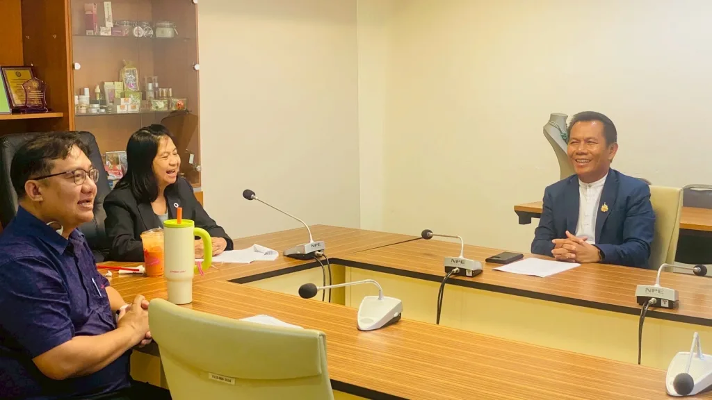 วันที่ 16 พฤษภาคม 2568 มหาวิทยาลัยเทคโนโลยีราชมงคลอีสาน โดย รองศาสตราจารย์ ดร.โฆษิต ศรีภูธร อธิการบดี มทร.อีสาน มอบหมายให้ ผู้ช่วยศาสตราจารย์ ดร.เอนก เจริญภักดี รองอธิการบดีฝ่ายยุทธศาสตร์ นโยบายและแผน พร้อมด้วย อาจารย์ ดร.วันเฉลิม พูนสวัสดิ์ และ อาจารย์ ดร.ยุทธพงษ์ อินทร์กง อาจารย์ประจำสาขาฟิสิกส์ประยุกต์ คณะวิทยาศาสตร์และศิลปศาสตร์ เข้าพบ นางสุภาพร โชคเฉลิมวงศ์ ผู้อำนวยการกองบริหารทุนวิจัยและนวัตกรรม 1 สำนักงานวิจัยแห่งชาติ (วช.) และ รองศาสตราจารย์ ดร.สุขุม อิสเสงี่ยม ผู้ประสานงานหลักศูนย์รวมผู้เชี่ยวชาญด้านการออกแบบไมโครอิเล็กทรอนิกส์แห่งประเทศไทย (Hub for Future Technology เพื่อหารือแนวทางพัฒนากำลังคนสมรรถนะสูงด้าน Semiconductor ตามนโยบาย 4+2 ของกระทรวงการอุดมศึกษา วิทยาศาสตร์ วิจัยและนวัตกรรม (อว.) รองรับการขับเคลื่อนอุตสาหกรรมเป้าหมายของประเทศ และเทคโนโลยีแห่งอนาคต ห้องประชุมสำนักงานวิจัยแห่งชาติ กรุงเทพมหานคร
