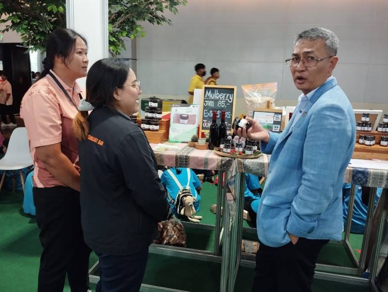 วันที่ 11 -15 สิงหาคม 2566 มหาวิทยาลัยเทคโนโลยีราชมงคลอีสาน โดย สถาบันวิจัยและพัฒนา นำผลงานนักวิจัย มทร.อีสาน ร่วมจัดแสดงบูธนิทรรศการในงาน “เทคโนโลยีและนวัตกรรมของไทย ประจำปี 2566 : TechnoMart 2023” ณ อาคาร 12 ศูนย์แสดงสินค้าและการประชุมอิมแพ็ค เมืองทองธานี อำเภอปากเกร็ด จังหวัดนนทบุรี โดยมีวัตถุประสงค์เพื่อนำเสนอผลงานวิจัยที่แสดงถึงศักยภาพของคนไทย รวมถึงเป็นการเปิดโอกาสให้ผู้ประกอบการได้เจอกับนักวิจัย เกิดการแลกเปลี่ยนความรู้ใหม่ ๆ ซึ่งกันและกัน โดยผลงานที่นำร่วมจัดแสดงในครั้งนี้ ได้แก่ ผลิตภัณฑ์ลูกหม่อน (ผลมัลเบอร์รี่) ของวิสาหกิจชุมชนกลุ่ม @View Share Farm เข้าร่วมจัด ซึ่งได้แปรรูปเป็นผลิตภัณฑ์ที่หลากหลาย อาทิเช่น มัลเบอร์รี่แยม (Mulberry Jam) น้ำมัลเบอร์รี่พร้อมดื่ม (Mulberry Juice) และน้ำมัลเบอร์รี่สกัดเข้มข้น (Mulberry Extract) เป็นผลงานจากการให้บริการคำปรึกษาและข้อมูลทางด้านวิทยาศาสตร์และเทคโนโลยี คลินิกเทคโนโลยีเครือข่าย โดยดร.เยาวพา ความหมั่น คณะนวัตกรรมและเทคโนโลยีการเกษตร มทร.อีสาน นครราชสีมา