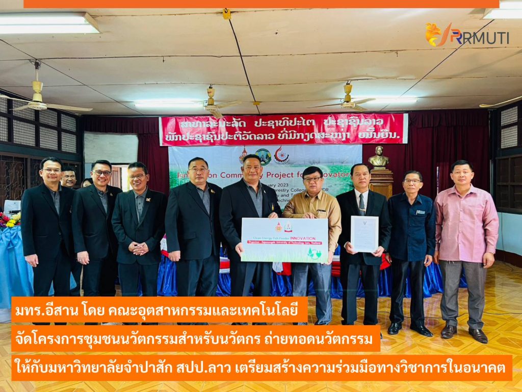 วันที่ 14 มกราคม 2565 มหาวิทยาลัยเทคโนโลยีราชมงคลอีสาน โดย คณะอุตสาหกรรมและเทคโนโลยี ได้ดำเนินโครงการชุมชนนวัตกรรมสำหรับนวัตกร กิจกรรมการถ่ายทอดและสร้างชุมชนนวัตกรรม ให้กับมหาวิทยาลัยจำปาสัก เมืองปากเซ แขวงจำปาสัก สาธารณรัฐประชาธิปไตยประชาชนลาว (สปป.ลาว) โดยโครงการนี้ได้รับเกียรติจาก รศ.ดร.โฆษิต ศรีภูธร อธิการบดีมหาวิทยาลัยเทคโนโลยีราชมงคลอีสานผศ.ดร.นสพ.ชเวง สารคล่อง รองอธิการบดีประจำวิทยาเขตสกลนคร รศ.ดร.สำเนาว์ เสาวกูล รองอธิการบดีประจำวิทยาเขตสุรินทร์ อาจารย์ปริญ นาชัยสิทธิ์ รองอธิการบดีประจำวิทยาเขตขอนแก่น ผศ.ดร.สุริยา แก้วอาษา คณบดีคณะอุตสาหกรรมและเทคโนโลยี และผู้ช่วยคณบดีฯ อาจารย์นครินทร์ ศรีปัญญา ,ผศ.ดร.สัณหวัจน์ ทองแดง ร่วมในโครงการ
