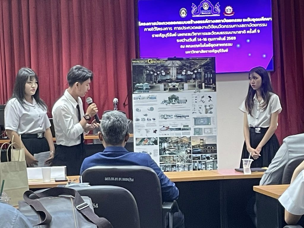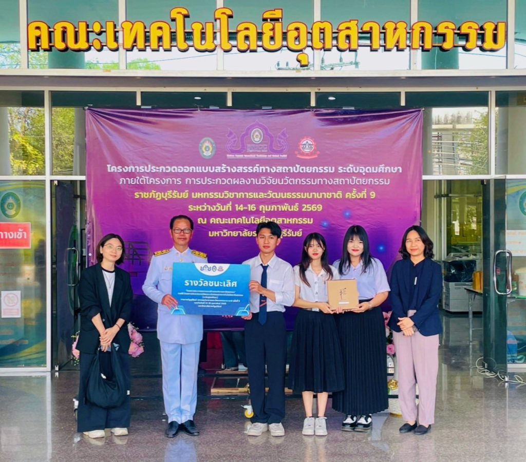 มหาวิทยาลัยเทคโนโลยีราชมงคลอีสาน ขอแสดงความยินดีกับนักศึกษาหลักสูตรสถาปัตยกรรมภายใน ชั้นปีที่ 4 จำนวน 2 ทีม ที่ได้รับ รางวัลชนะเลิศ และ รางวัลชมเชย จากโครงการประกวดออกแบบสร้างสรรค์ทางสถาปัตยกรรม ระดับอุดมศึกษา ภายใต้โครงการประกวดผลงานวิจัยนวัตกรรมทางสถาปัตยกรรม ณ มหาวิทยาลัยราชภัฏบุรีรัมย์ เมื่อวันที่ 14 กุมภาพันธ์ 2569 อันเป็นความสำเร็จที่สะท้อนศักยภาพของนักศึกษาในการประยุกต์องค์ความรู้สู่การออกแบบเชิงสร้างสรรค์ได้อย่างเป็นรูปธรรม