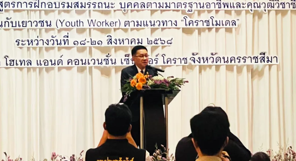 ในการนี้ ผู้ช่วยศาสตราจารย์ ดร.ระบิล พ้นภัย รองอธิการบดีฝ่ายวิชาการและวิเทศสัมพันธ์ พร้อมด้วย ผู้ช่วยศาสตราจารย์ ดร.ศศิธร อินทร์นอก รองผู้อำนวยการฝ่ายพัฒนาวิชาการฯ สำนักส่งเสริมวิชาการและงานทะเบียน ยังได้เข้าร่วมพิธีเปิดการอบรมเชิงปฏิบัติการหลักสูตรการฝึกอบรมสมรรถนะบุคคลตามมาตรฐานอาชีพและคุณวุฒิวิชาชีพอาชีพผู้ทำงานกับเยาวชน (Youth Worker) ตามแนวทาง “โคราชโมเดล” จัดโดย จังหวัดนครราชสีมา องค์การยูนิเซฟ ประเทศไทย สถาบันคุณวุฒิวิชาชีพ (องค์การมหาชน) สำนักคณะกรรมการศึกษาธิการจังหวัดนครราชสีมาด้วย