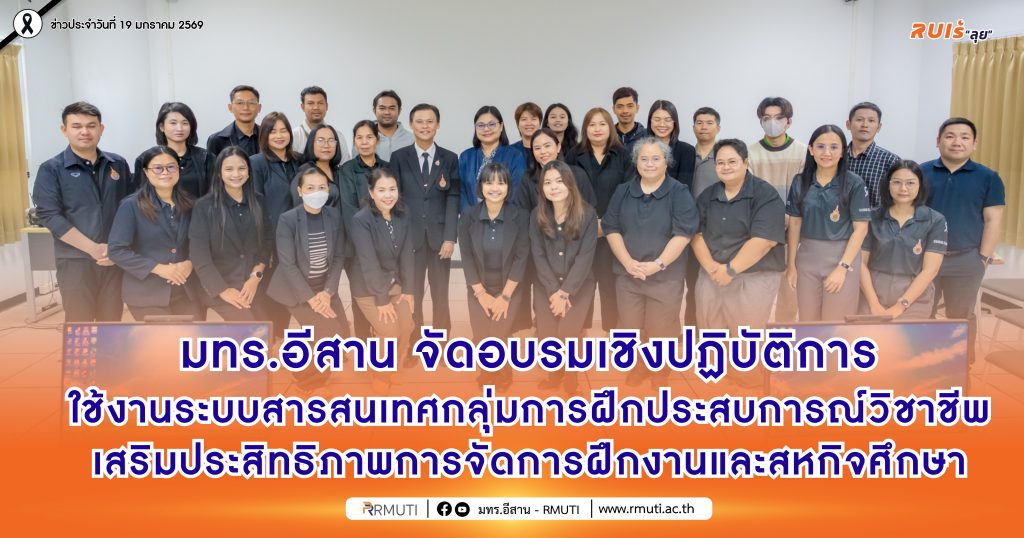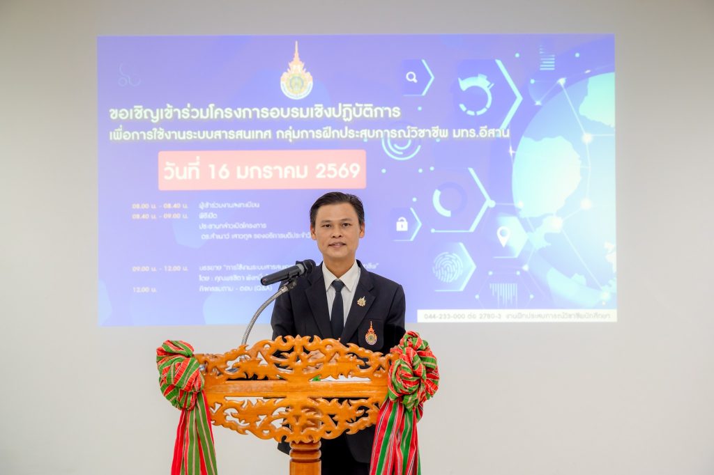 วันที่ 16 มกราคม 2569 มหาวิทยาลัยเทคโนโลยีราชมงคลอีสาน โดย รองศาสตราจารย์ ดร.โฆษิต ศรีภูธร อธิการบดี มทร.อีสาน มอบหมายให้ อาจารย์ทรงยศ กิตติชนม์ธวัช คณบดีคณะเกษตรศาสตร์และเทคโนโลยี เป็นประธานในพิธีเปิดโครงการอบรมเชิงปฏิบัติการเพื่อการใช้งานระบบสารสนเทศกลุ่มการฝึกประสบการณ์วิชาชีพ มหาวิทยาลัยเทคโนโลยีราชมงคลอีสาน ณ ห้องปฏิบัติการคอมพิวเตอร์ ชั้น 1 อาคารอทิตยาทร คณะเกษตรศาสตร์และเทคโนโลยี วิทยาเขตสุรินทร์