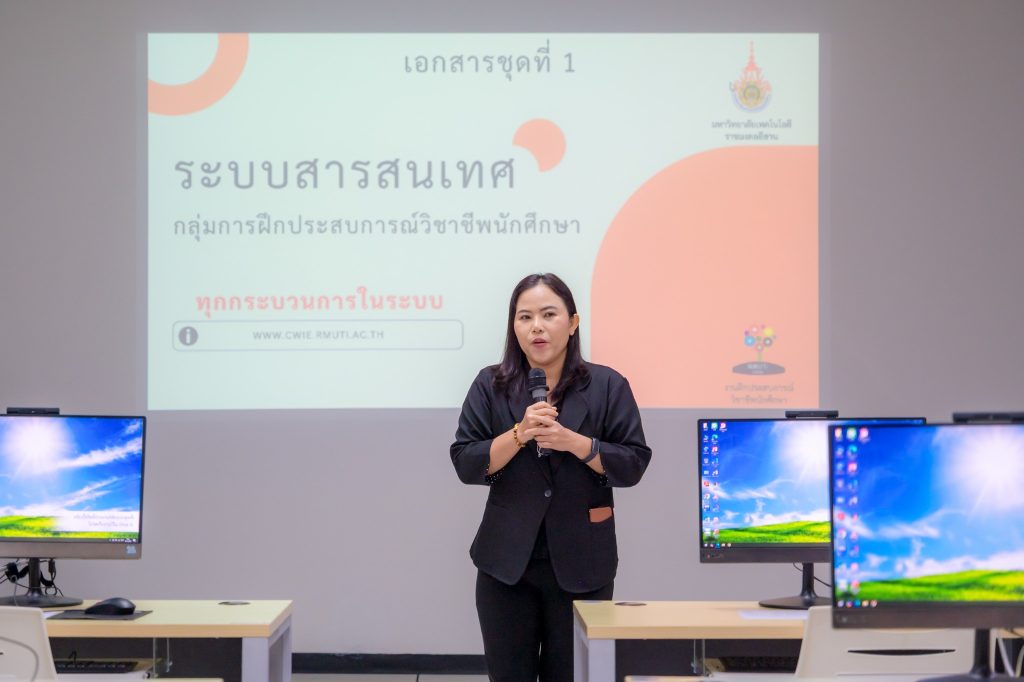 ในการนี้ อาจารย์ ดร.จิณณพัต โรจนวงศ์ ผู้อำนวยการสำนักส่งเสริมวิชาการและงานทะเบียน มหาวิทยาลัยเทคโนโลยีราชมงคลอีสาน ได้กล่าวรายงานวัตถุประสงค์ของการจัดโครงการ ซึ่งมุ่งเน้นให้ความรู้และเสริมสร้างความเข้าใจในการใช้งานระบบสารสนเทศกลุ่มการฝึกประสบการณ์วิชาชีพ เพื่อสนับสนุนกระบวนการบริหารจัดการรายวิชาการฝึกงานและสหกิจศึกษาให้เป็นไปอย่างมีประสิทธิภาพและเป็นระบบมากยิ่งขึ้น