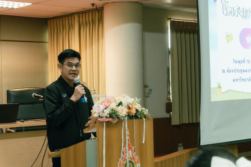 อาจารย์ธนินทร์ ระเบียบโพธิ์ ผู้ช่วยอธิการบดี กล่าวให้โอวาทแก่นักศึกษา โดยเน้นย้ำว่ากิจกรรมนักศึกษาเป็นกระบวนการสำคัญในการพัฒนาทักษะ ประสบการณ์ และจิตสำนึกที่ดี พร้อมทั้งปลูกฝังความรับผิดชอบ การเสียสละ และการคำนึงถึงประโยชน์ส่วนรวม ซึ่งเป็นคุณลักษณะสำคัญของบัณฑิตที่พึงประสงค์ อีกทั้งยังเป็นประสบการณ์ชีวิตที่ไม่สามารถเรียนรู้ได้จากในห้องเรียน