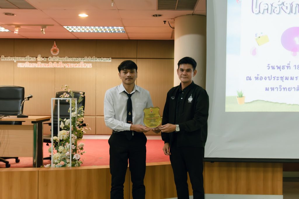ในโอกาสนี้ ประธานในพิธีได้มอบโล่ประกาศเกียรติคุณแก่นักศึกษาที่มีผลงานดีเด่น โดย นายอภินันท์ ใจชอบ นักศึกษาชั้นปีที่ 3 สาขาวิชาวิศวกรรมโยธาและโครงสร้างพื้นฐาน คณะวิศวกรรมศาสตร์และเทคโนโลยี ได้รับรางวัลนักศึกษาที่มีผลงานดีเด่นและสร้างชื่อเสียงให้กับมหาวิทยาลัย จากการคว้าเหรียญทองกีฬามวยไทยสมัครเล่น รุ่นน้ำหนักไม่เกิน 67 กิโลกรัม ในการแข่งขันกีฬามหาวิทยาลัยแห่งประเทศไทย ครั้งที่ 51 “อินทนิลเกมส์” ณ มหาวิทยาลัยแม่โจ้ จังหวัดเชียงใหม่