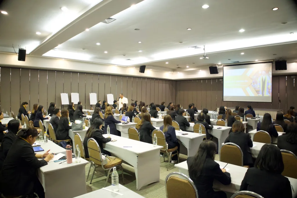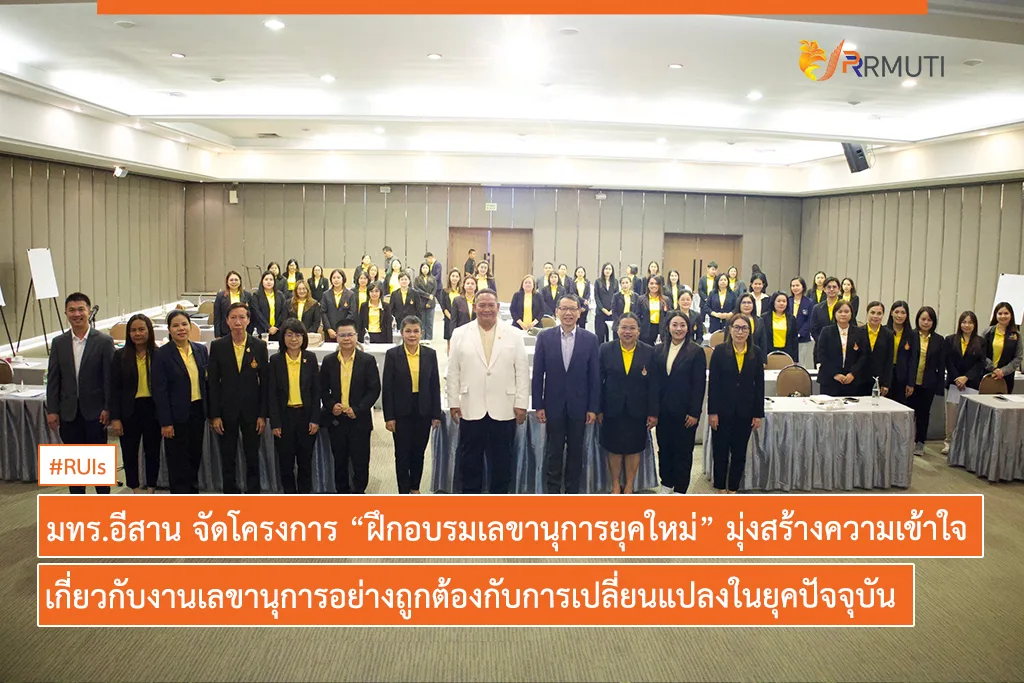วันที่ 16–17 สิงหาคม 2567 มหาวิทยาลัยเทคโนโลยีราชมงคลอีสาน จัดโครงการ “ฝึกอบรมเลขานุการยุคใหม่ มหาวิทยาลัยเทคโนโลยีราชมงคลอีสาน” ระหว่างวันที่ 16-17 สิงหาคม 2567 ณ ห้องราชาวดี ๒ ชั้น ๒ (อาคารราชาวดี) รอยัล ฮิลส์ กอล์ฟ รีสอร์ท แอนด์ สปา จังหวัดนครนายก โดยมี ดร.ศิริลักษณ์ จันทร์สว่าง ผู้อำนวยการสำนักงานอธิการบดี กล่าวรายงาน และได้รับเกียรติจาก รองศาสตราจารย์ ดร.โฆษิต ศรีภูธร อธิการบดี มทร.อีสาน เป็นประธานเปิดโครงการพร้อมบรรยายเรื่อง “ภาวะผู้นำ และความสุขในการทำงาน (Happy Workplace)” ให้แก่ผู้เข้าร่วมอบรมในครั้งนี้ ซึ่งประกอบด้วย บุคลากรของ ทุกวิทยาเขต คณะ สำนัก สำนัก สถาบัน กอง หน่วยตรวจสอบภายใน รวมทั้งสิ้น 63 คน