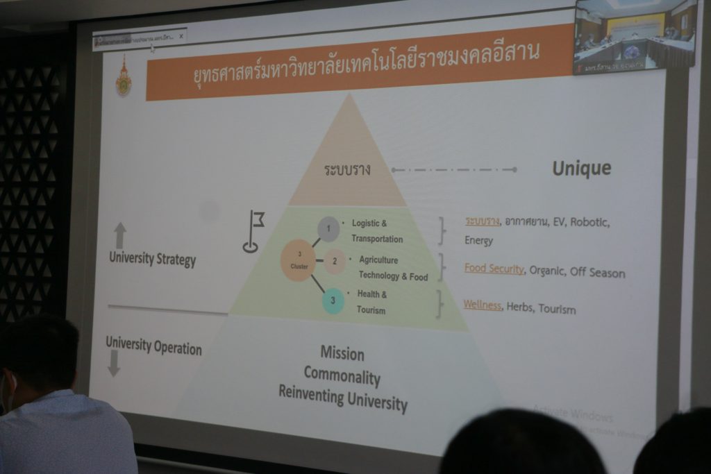 วันที่ 18 ตุลาคม 2565 มหาวิทยาลัยเทคโนโลยีราชมงคลอีสาน โดย กองนโยบายและแผน จัดการประชุมรับมอบนโยบายและแนวทางการจัดทำงบประมาณ ประจำปีงบประมาณ พ.ศ. 2567 ผ่านระบบ zoom meeting ณ ห้องประชุมแคนา1 อาคารสำนักงานอธิการบดี โดยมี รองศาสตราจารย์ ดร.โฆษิต ศรีภูธร อธิการบดีมหาวิทยาลัยเทคโนโลยีราชมงคลอีสาน เป็นประธานการประชุม และมีผู้ช่วยศาสตราจารย์ ดร.เอนก เจริญภักดี รองอธิการบดีฝ่ายยุทธศาสตร์ นโยบายและแผน กล่าวรายงานวัตถุประสงค์การประชุม