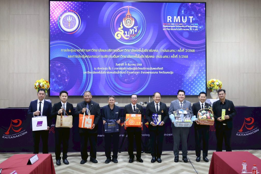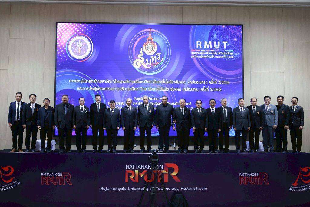 วันที่ 19 ธันวาคม 2568 มหาวิทยาลัยเทคโนโลยีราชมงคลอีสาน โดย รองศาสตราจารย์ ดร.โฆษิต ศรีภูธร อธิการบดี มทร.อีสาน และตำแหน่งกรรมการและเลขานุการ ทปอ.มทร. เข้าร่วมการประชุมนายกสภามหาวิทยาลัยและอธิการบดีมหาวิทยาลัยเทคโนโลยีราชมงคล (ทปนอ.มทร.) ครั้งที่ 2/2568 โดยมี พลเอก จรัล กุลละวณิชย์ นายกสภา มทร.รัตนโกสินทร์ ในนามประธานที่ประชุมนายกสภามหาวิทยาลัยและอธิการบดีมหาวิทยาลัยเทคโนโลยีราชมงคล (ทปนอ.มทร.) เป็นประธานในการประชุม พร้อมด้วย รศ.ดร.อุดมวิทย์ ไชยสกุลเกียรติ อธิการบดี มทร.รัตนโกสินทร์ และ ตำแหน่งประธาน ทปอ.มทร. พร้อมด้วยคณะผู้บริหาร เข้าร่วมการประชุมฯ ณ ห้องประชุม ชั้น 5 อาคารศูนย์การเรียนรู้และวิทยบริการเฉลิมพระเกียรติ สำนักวิทยบริการและเทคโนโลยีสารสนเทศ มทร.รัตนโกสินทร์ ศาลายา ทั้งนี้ ได้รับเกียรติจาก ดร.พันธุ์เพิ่มศักดิ์ อารุณี รองปลัดกระทรวง สำนักงานปลัดกระทรวง กระทรวงการอุดมศึกษา วิทยาศาสตร์ วิจัยและนวัตกรรม ได้มอบนโยบายการขับเคลื่อนมหาวิทยาลัยเพื่อการพัฒนากำลังคน การวิจัยและนวัตกรรม ให้สอดคล้องกับนโยบายกระทรวงการอุดมศึกษา วิทยาศาสตร์ วิจัยและนวัตกรรม