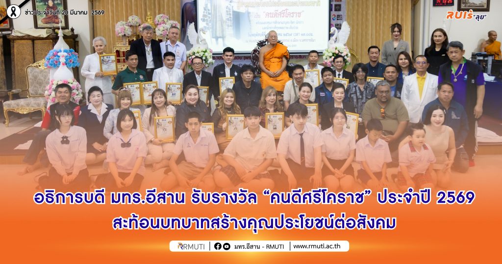 สำหรับรางวัล “คนดีศรีโคราช” ประจำปี 2569 ถือเป็นรางวัลที่มอบให้แก่บุคคลผู้ทำคุณประโยชน์ต่อสังคมและประเทศชาติในด้านต่าง ๆ โดยการที่ รองศาสตราจารย์ ดร.โฆษิต ศรีภูธร อธิการบดี มทร.อีสาน ได้รับรางวัลในครั้งนี้ นับเป็นอีกหนึ่งความภาคภูมิใจของมหาวิทยาลัย และสะท้อนถึงบทบาทในการขับเคลื่อนการศึกษาและการพัฒนาสังคมในพื้นที่จังหวัดนครราชสีมาและประเทศชาติต่อไป