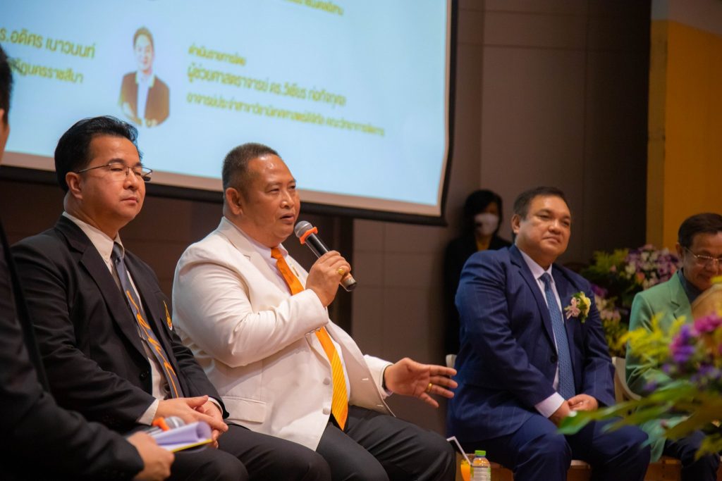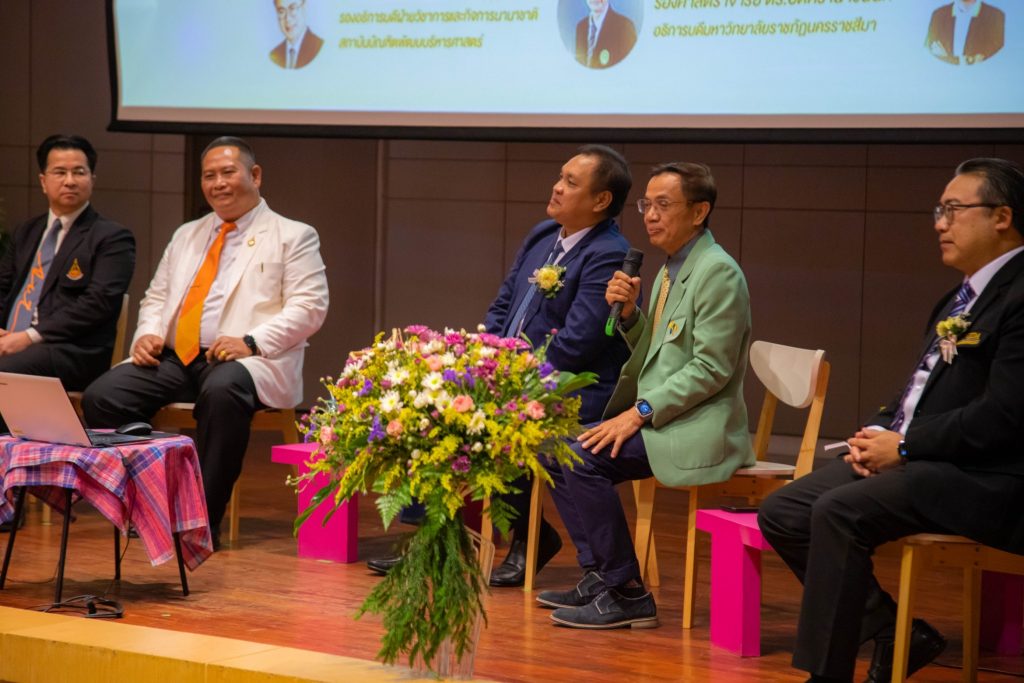 ในการนี้ รองศาสตราจารย์ ดร.โฆษิต ศรีภูธร อธิการบดี มทร.อีสาน ได้เข้าร่วมการเสวนาเพื่อแลกเปลี่ยนข้อคิดเห็นและแนวทาง ในหัวข้อ “ความร่วมมือของสถาบันอุดมศึกษา เพื่อยกระดับคุณภาพการศึกษาและการพัฒนาท้องถิ่น” ร่วมกับ คณะผู้บริหารจากอีก 4 มหาวิทยาลัยชั้นนำของประเทศ ได้แก่ มหาวิทยาลัยเทคโนโลยีสุรนารี มหาวิทยาลัยเกษตรศาสตร์ มหาวิทยาลัยราชภัฎนครราชสีมา สถาบันบัณฑิตพัฒนบริหารศาสตร์ อีกด้วย