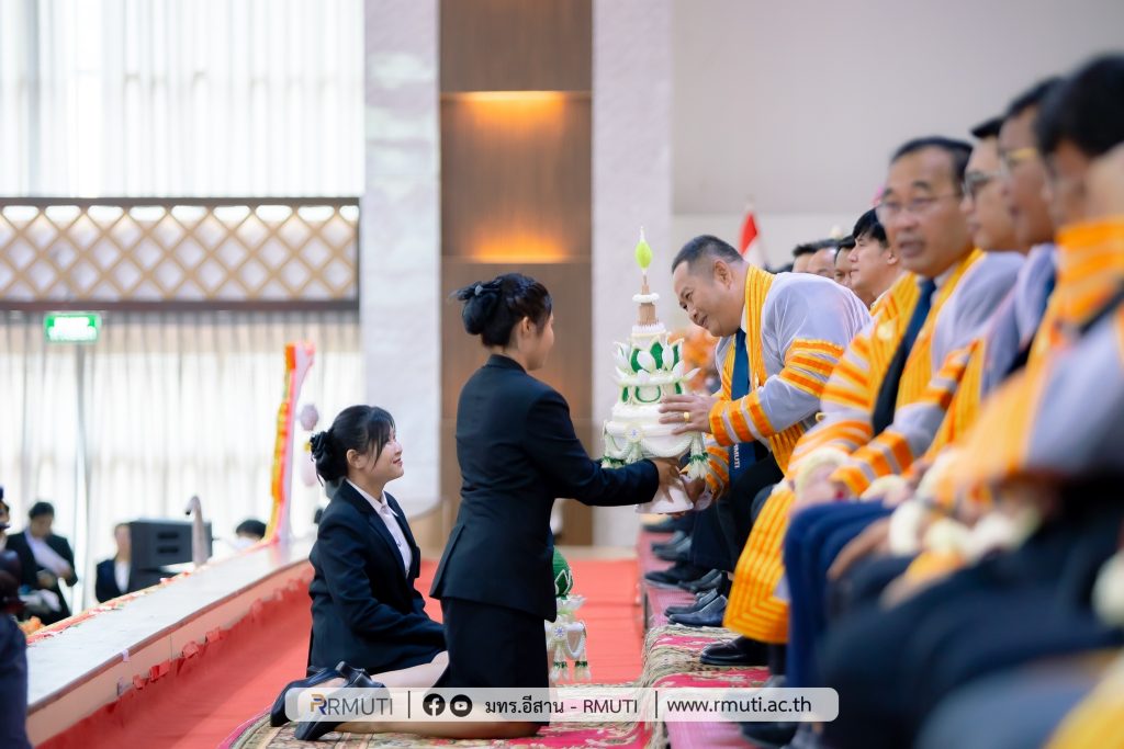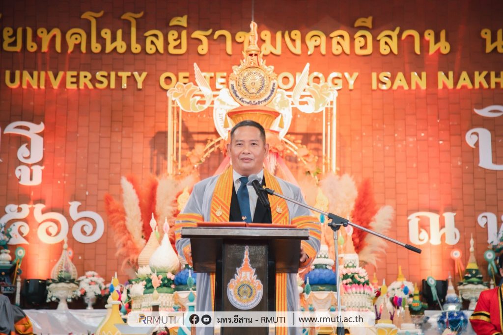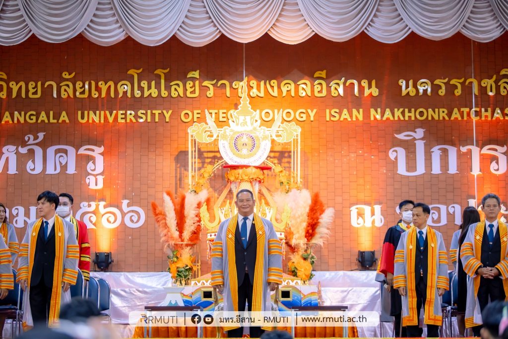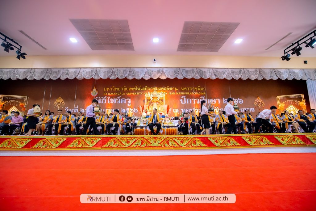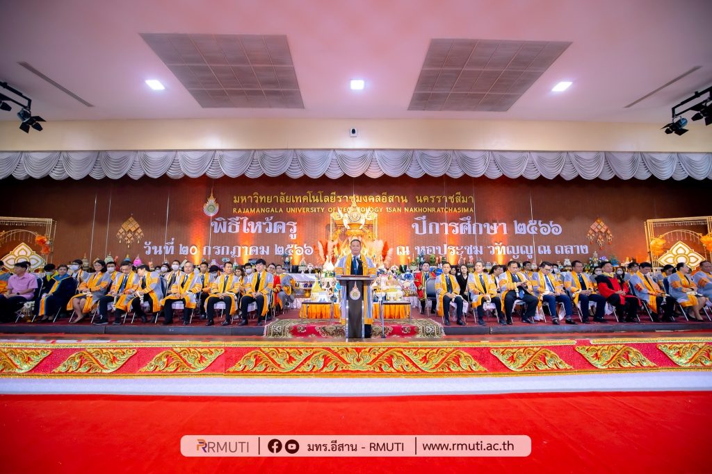 สำหรับพิธีไหว้ครูวันนี้ เป็นภาพแห่งพิธีการอันศักดิ์สิทธิ์และเป็นสิริมงคลที่สร้างความประทับใจ แก่คณาจารย์ทุกคน และจะเป็นส่วนผลักดันให้อาจารย์เกิด ความรัก ความเมตตาต่อศิษย์ อยากมอบวิชาความรู้ให้อย่างเต็มที่ และเป็นการแสดงความกตัญญูกตเวทีต่อครูซึ่งคือผู้มีพระคุณ ประสิทธิประสาทความรู้ต่างๆ พิธีไหว้ครู จึงเป็นเสมือนการประกาศความผูกพันและคุณธรรมระหว่างครูกับศิษย์ที่จะมั่นคงยืนยาวตลอดไป ในนามของมหาวิทยาลัยเทคโนโลยีราชมงคลอีสาน ขอมอบความปรารถนาดีมายังนักศึกษาทุกคน ที่ประกาศตนเป็นศิษย์และกล่าวปฏิญาณตนต่อหน้าคณาจารย์ว่าจะเป็นศิษย์ที่ดี จะตั้งใจศึกษาเล่าเรียน ขอจงบังเกิดผลเป็นมงคลในชีวิต ขอกราบอาราธนาอำนาจคุณพระศรีรัตนตรัย พระสยามเทวาธิราช องค์บูรพมหากษัตริยาธิราชเจ้า ทุกพระองค์ บุญบารมีอันศักดิ์สิทธิ์ของท่านท้าวสุรนารี และพระบารมีขององค์พระบาทสมเด็จพระวชิรเกล้าเจ้าอยู่หัว ได้โปรดอภิบาลบันดาลดลให้นักศึกษาทุกคน ประสบแต่ความสุขความเจริญ ทั้งทางกายใจ มีสติปัญญา มีวิริยะอุตสาหะ ในการศึกษาหาความรู้ และมีสุขภาพพลานามัยที่แข็งแรงสมบูรณ์ ประสบความสำเร็จในการศึกษา ออกไปเป็นกำลังที่สำคัญของชาติบ้านเมืองในอนาคต สามารถสร้างเกียรติภูมิ ชื่อเสียง และเกียรติยศให้กับมหาวิทยาลัยเทคโนโลยีราชมงคลอีสาน ให้สมกับการเป็น “ชาวราชมงคล”ตลอดไป ”