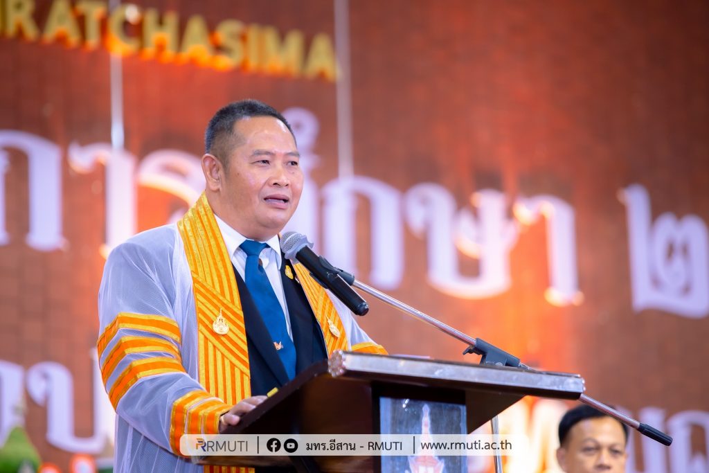 นอกจากนี้ รองศาสตราจารย์ ดร.โฆษิต ศรีภูธร ประธานในพิธี กล่าวให้โอวาทแก่นักศึกษาใจความว่า “การจัดพิธีไหว้ครู โดยมีคณาจารย์และผู้แทนนักศึกษาของทั้ง นครราชสีมา และทั้ง 4 วิทยาเขต ได้แก่ วิทยาเขตขอนแก่น วิทยาเขตสกลนคร วิทยาเขตสุรินทร์ และวิทยาเขตร้อยเอ็ด ณ ทุ่งกุลาร้องไห้ มาร่วมในพิธีไหว้ครูในวันนี้นั้น นับเป็นการแสดงออกถึงความเป็นน้ำหนึ่งใจเดียวกันของชาวมหาวิทยาลัยเทคโนโลยีราชมงคลอีสาน ซึ่งไม่ว่าจะอยู่ ณ วิทยาเขตใดก็ถือว่าเป็นชาว “ราชมงคลอีสาน” อันเป็นสถาบันที่ทรงเกียรติอย่างยิ่ง เนื่องจากได้รับพระราชทานนาม สถาบัน“ราชมงคล” จากพระบาทสมเด็จพระบรมชนกาธิเบศร มหาภูมิพลอดุลยเดชมหาราช บรมนาถบพิตร อีกทั้งยังได้พระราชทานตรา พระราชลัญจกรและพระมหาพิชัยมงกุฎ เป็นตราสัญลักษณ์และเครื่องหมายประจำล้นเกล้ารัชกาลที่ ๙ มาเป็นตราประจำมหาวิทยาลัย ซึ่งนับเป็นพระมหากรุณาธิคุณ อันล้นพ้นหาที่สุดมิได้ ที่ได้พระราชทานให้แก่ชาวราชมงคลทุกคนรับเป็นเกียรติยศ ความภาคภูมิใจ และมงคลอันสูงสุดของพวกเราชาว “ราชมงคล”