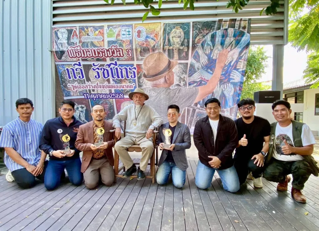 วันที่ 11 ตุลาคม 2568 คณาจารย์คณะสถาปัตยกรรมศาสตร์และศิลปกรรมสร้างสรรค์ มหาวิทยาลัยเทคโนโลยีราชมงคลอีสาน เข้ารับรางวัล “ทวี รัชนีกร” ประจำปี ๒๕๖๘ ณ หอศิลป์ทวี รัชนีกร ถนนเพชรมาตุคลา ตำบลหัวทะเล อำเภอเมืองนครราชสีมา จังหวัดนครราชสีมา โดยรางวัลดังกล่าวมอบให้แก่บุคคลที่เป็นศิษย์เก่าของ “ศิลปกรรม เทคนิคโคราช” หรือ บุคคลอันผู้สร้างสรรค์งานศิลปะ และผู้มีคุณูปการต่อสังคมเป็นที่ยอมรับโดยทั่วไป ซึ่งคณาจารย์ที่ได้รับรางวัลในปีนี้ มีจำนวนทั้งสิ้น 3 ท่าน ได้แก่