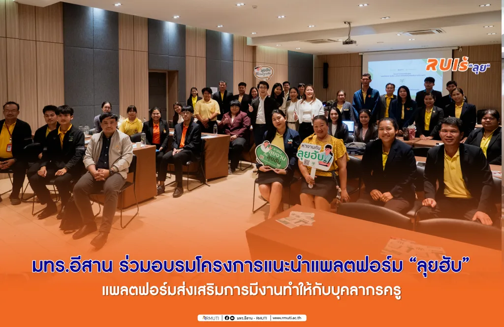 วันที่ 18 พฤศจิกายน 2567 มหาวิทยาลัยเทคโนโลยีราชมงคลอีสาน โดย รองศาสตราจารย์โฆษิต ศรีภูธร อธิการบดี มทร.อีสาน มอบหมายให้ กองพัฒนานักศึกษา งานแนะแนวการศึกษาและอาชีพ เข้าร่วมอบรมโครงการแนะนำแพลตฟอร์ม “ลุยฮับ” (Luihub.com) แพลตฟอร์มส่งเสริมการมีงานทำให้กับบุคลากรครู ณ ห้องประชุมโรงแรม นาดี 10 ขอนแก่น จังหวัดขอนแก่น