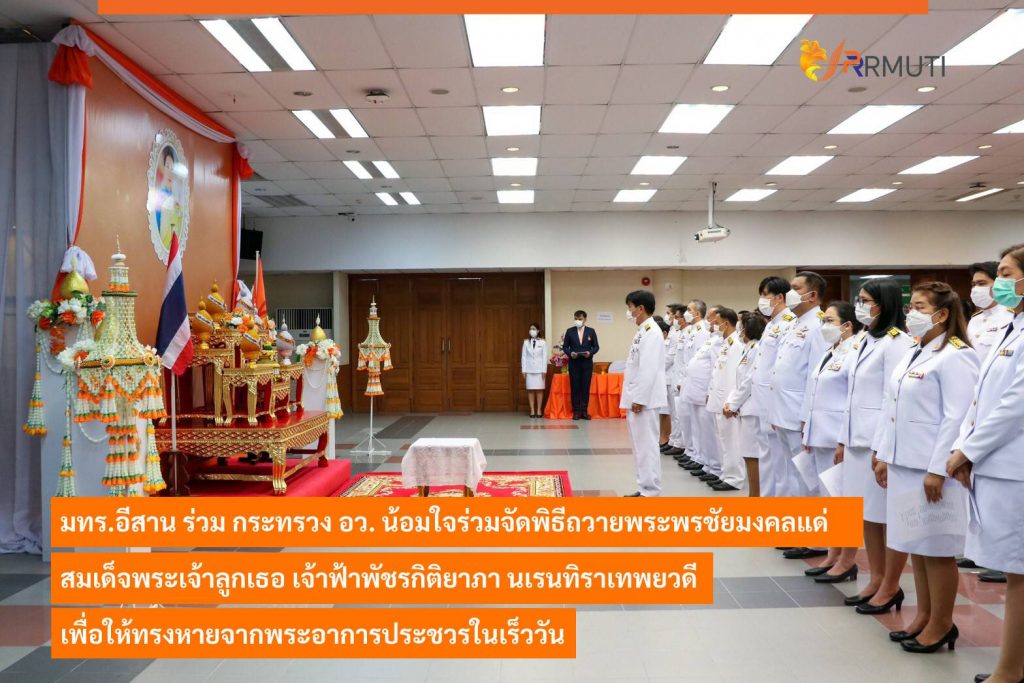 วันที่ 20 ธันวาคม 2565 มหาวิทยาลัยเทคโนโลยีราชมงคลอีสาน โดยรองศาสตราจารย์ ดร.โฆษิต ศรีภูธร อธิการบดีมหาวิทยาลัยเทคโนโลยีราชมงคลอีสาน มอบหมายให้ ผู้ช่วยศาสตราจารย์ณรงค์ ผลวงษ์ รองอธิการบดีฝ่ายบริหารและพัฒนาทรัพยากรมนุษย์ เป็นประธานในพิธีและนำคณะผู้บริหาร คณาจารย์ พนักงาน เจ้าหน้าที่ และนักศึกษา มทร.อีสาน เข้าร่วมพิธีลงนามถวายพระพรและพิธีถวายพระพรชัยมงคลแด่ สมเด็จพระเจ้าลูกเธอ เจ้าฟ้าพัชรกิติยาภา นเรนทิราเทพยวดี กรมหลวงราชสาริณีสิริพัชร มหาวัชรราชธิดา แบบออนไลน์ ผ่านระบบ Zoom Meeting ณ ห้องประชุมมรกตอีสาน สำนักวิทยบริการและเทคโนโลยีสารสนเทศ จัดโดย กระทรวงการอุดมศึกษา วิทยาศาสตร์ วิจัยและนวัตกรรม ซึ่งมีหน่วยงานในสังกัดกระทรวงการอุดมศึกษาฯ ทุกแห่งเข้าร่วมอย่างพร้อมเพรียงกัน