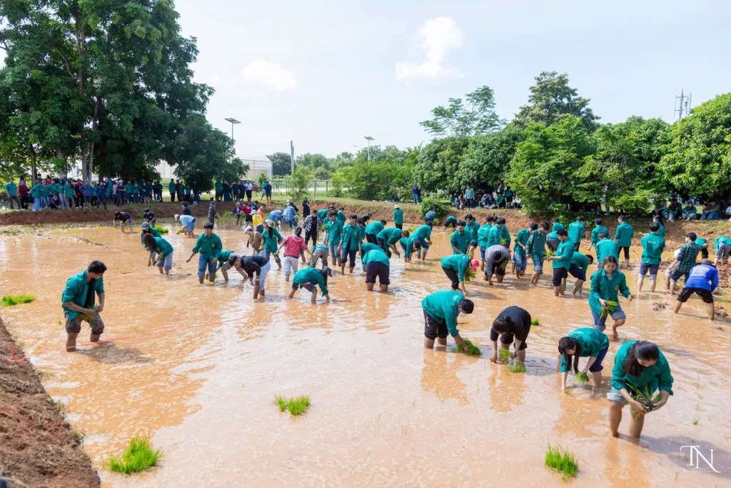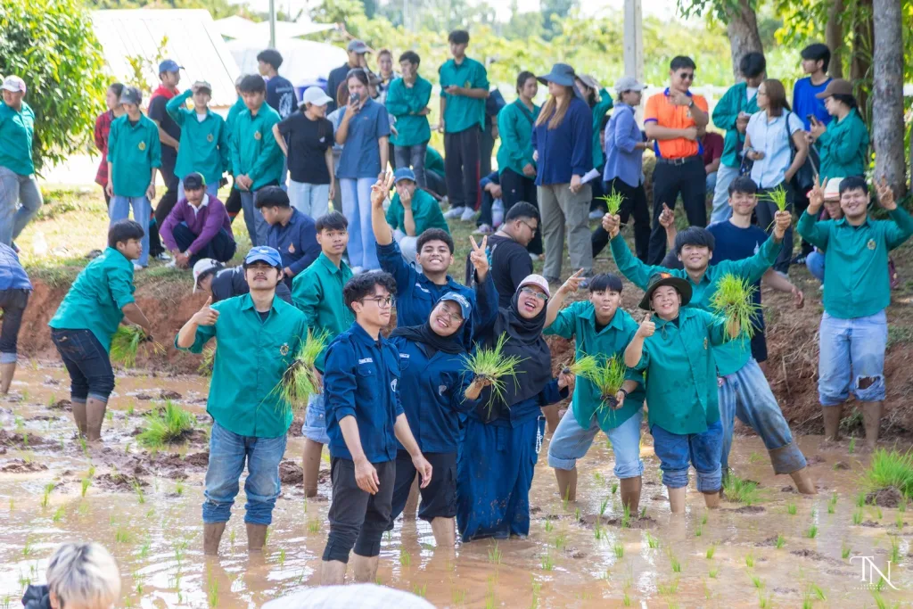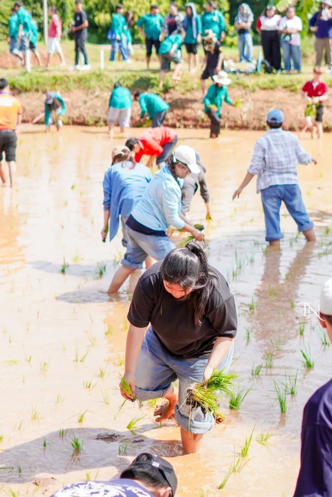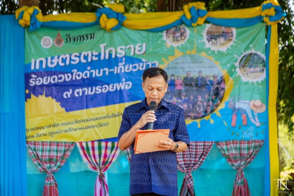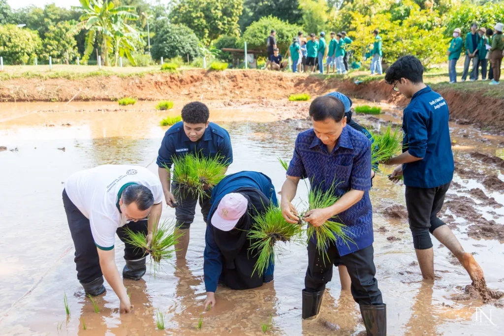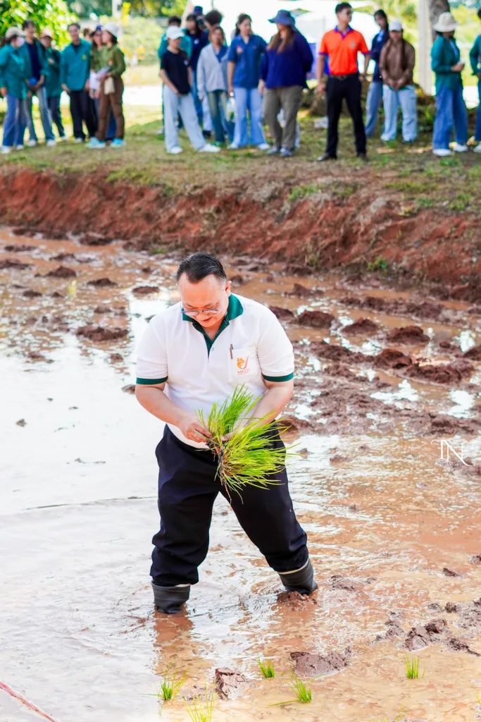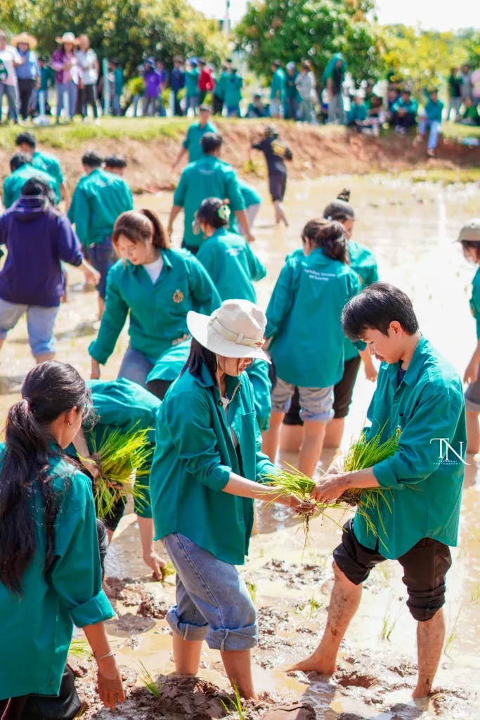 วันที่ 20 สิงหาคม 2568 รองศาสตราจารย์ ดร.โฆษิต ศรีภูธร อธิการบดีมหาวิทยาลัยเทคโนโลยีราชมงคลอีสาน มอบหมายให้ ผู้ช่วยศาสตราจารย์ สุรพจน์ วัชโรภากุล รองอธิการบดีฝ่ายบริหารและพัฒนาทรัพยากรมนุษย์ กล่าวเปิดโครงการเกษตรตะโกราย ร้อยดวงใจ ดำนา – เกี่ยวข้าว 9 ตามรอยพ่อ (กิจกรรมที่2 ลงแขกดำนา) โดยมีผู้ช่วยศาสตราจารย์ ดร.เฉลิมพล เยื้องกลาง คณบดีคณะนวัตกรรมและเทคโนโลยีการเกษตร และผู้ช่วยศาสตราจารย์ ดร.เดือนเพ็ญ วงค์สอน หัวหน้าสาขาพืชศาสตร์ รวมทั้ง ผู้บริหาร คณาจารย์ เจ้าหน้าที่ ในนามผู้ดำเนินโครงการเกษตรตะโกรายร้อยดวงใจ ดำนา – เกี่ยวข้าว 9 ตามรอยพ่อ (กิจกรรมที่ 2 ลงแขกดำนา) ได้นำนักศึกษาในโครงการฯ เข้าร่วมกิจกรรมลงแขกดำนา ในแปลงนาสาธิตจำนวน 2 แปลง ณ แปลงนาสาธิต คณะนวัตกรรมและเทคโนโลยีการเกษตร ศูนย์การศึกษาหนองระเวียง มหาวิทยาลัยเทคโนโลยีราชมงคลอีสาน