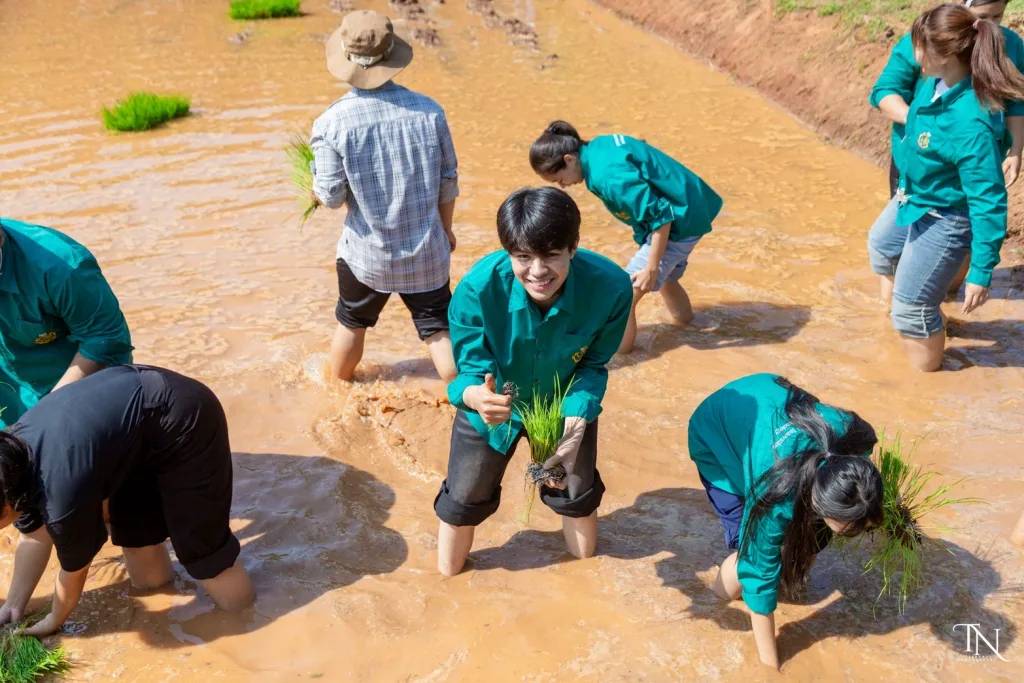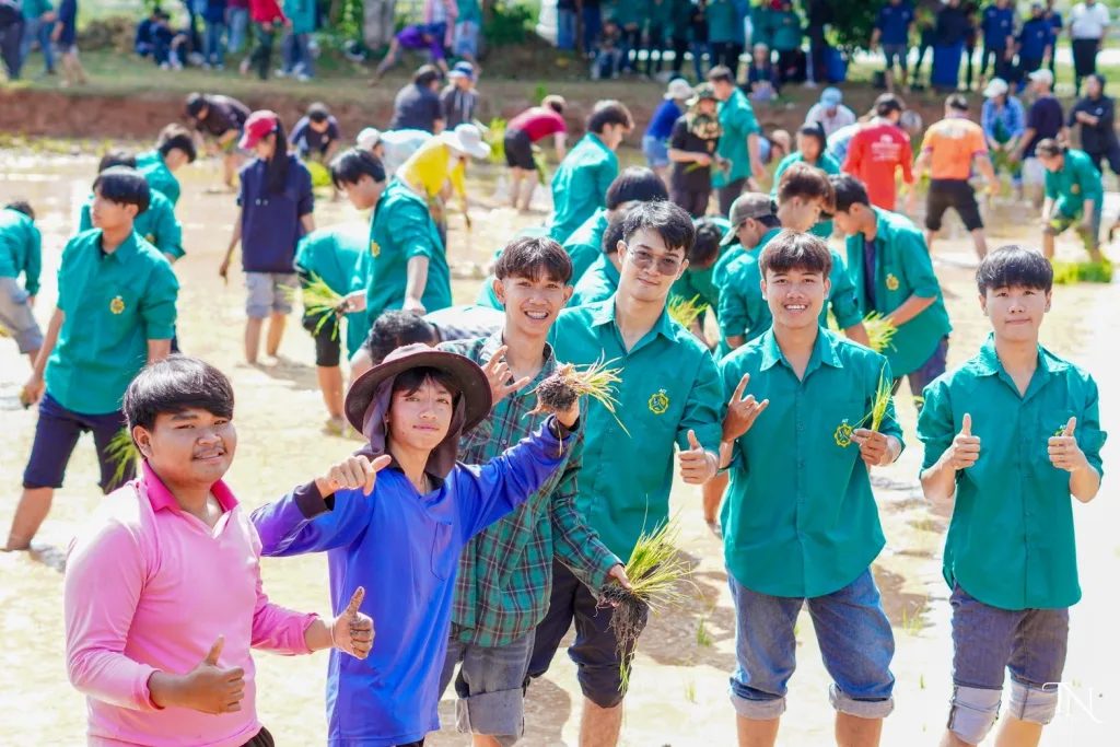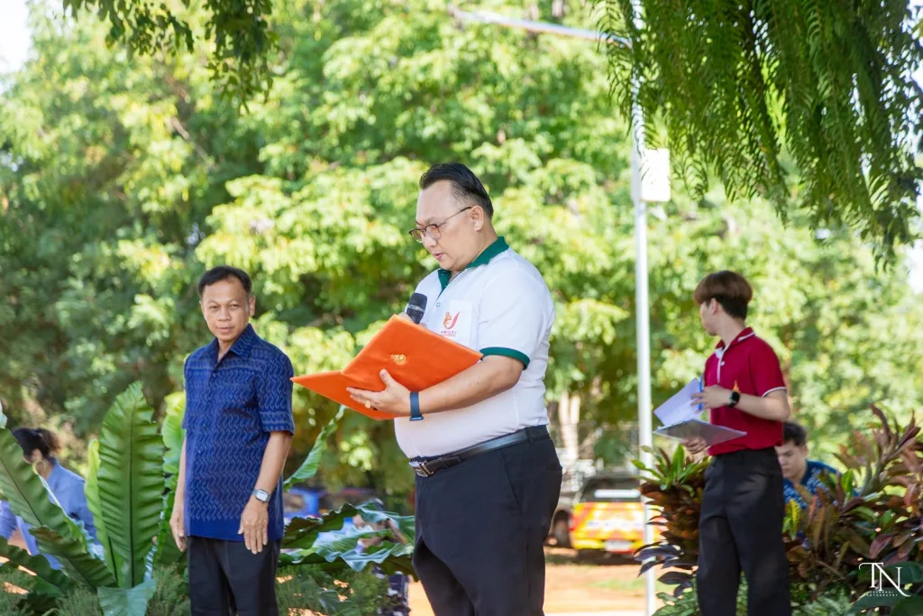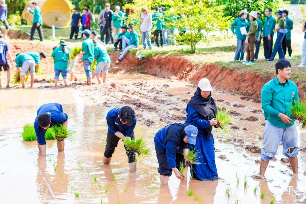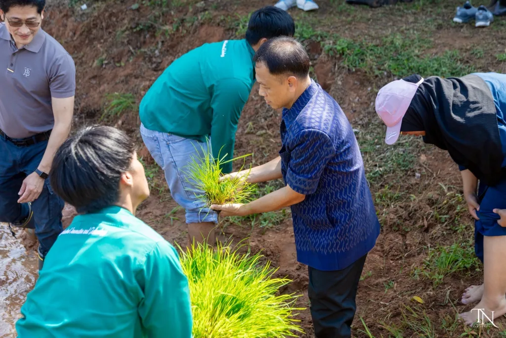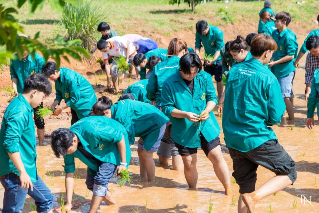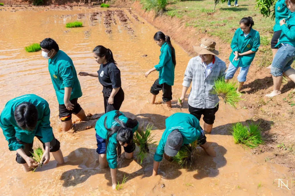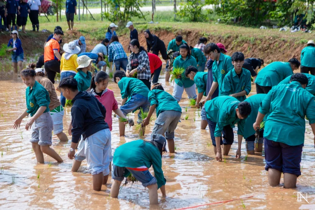 วันที่ 20 สิงหาคม 2568 รองศาสตราจารย์ ดร.โฆษิต ศรีภูธร อธิการบดีมหาวิทยาลัยเทคโนโลยีราชมงคลอีสาน มอบหมายให้ ผู้ช่วยศาสตราจารย์ สุรพจน์ วัชโรภากุล รองอธิการบดีฝ่ายบริหารและพัฒนาทรัพยากรมนุษย์ กล่าวเปิดโครงการเกษตรตะโกราย ร้อยดวงใจ ดำนา – เกี่ยวข้าว 9 ตามรอยพ่อ (กิจกรรมที่2 ลงแขกดำนา) โดยมีผู้ช่วยศาสตราจารย์ ดร.เฉลิมพล เยื้องกลาง คณบดีคณะนวัตกรรมและเทคโนโลยีการเกษตร และผู้ช่วยศาสตราจารย์ ดร.เดือนเพ็ญ วงค์สอน หัวหน้าสาขาพืชศาสตร์ รวมทั้ง ผู้บริหาร คณาจารย์ เจ้าหน้าที่ ในนามผู้ดำเนินโครงการเกษตรตะโกรายร้อยดวงใจ ดำนา – เกี่ยวข้าว 9 ตามรอยพ่อ (กิจกรรมที่ 2 ลงแขกดำนา) ได้นำนักศึกษาในโครงการฯ เข้าร่วมกิจกรรมลงแขกดำนา ในแปลงนาสาธิตจำนวน 2 แปลง ณ แปลงนาสาธิต คณะนวัตกรรมและเทคโนโลยีการเกษตร ศูนย์การศึกษาหนองระเวียง มหาวิทยาลัยเทคโนโลยีราชมงคลอีสาน