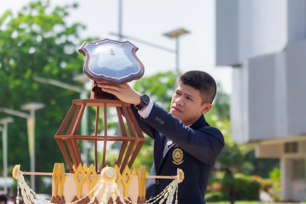 จากนั้นในช่วงเวลา 13.00 น. เป็นพิธีอัญเชิญโล่พระราชทาน พระบาทสมเด็จพระบรมชนกาธิเบศร มหาภูมิพลอดุลยเดชมหาราช บรมนาถบพิตร ณ หน้าอาคารเฉลิมพระเกียรติ ร.9 (อาคาร 9) มหาวิทยาลัยราชภัฏนครราชสีมา โดยมี รองศาสตราจารย์ ดร.อดิศร เนาวนนท์ อธิการบดี มรนม เป็นประธานในพิธีและอัญเชิญโล่พระราชทานให้แก่ตัวแทนนักศึกษาเพื่ออัญเชิญไปประดิษฐานบนเสลี่ยงอัญเชิญโล่พระราชทาน ณ มหาวิทยาลัยเทคโนโลยีราชมงคลอีสาน
