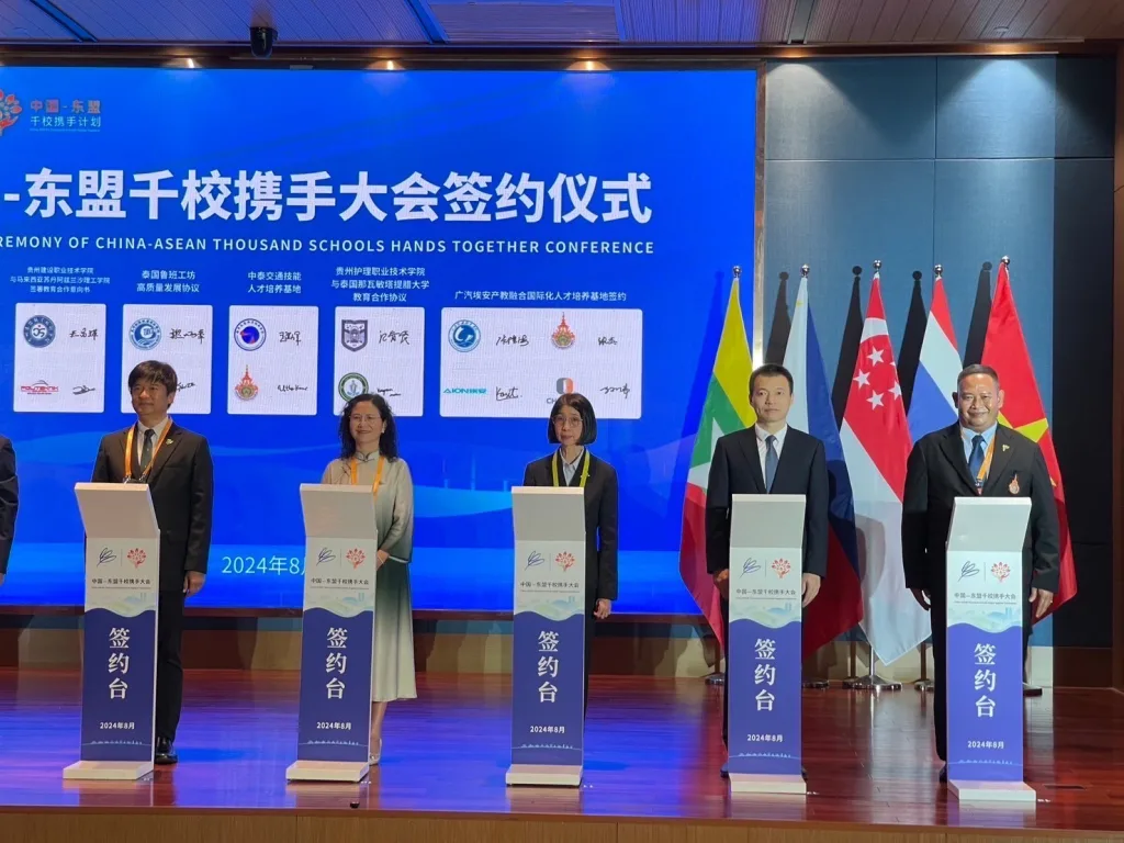 วันที่ 21 สิงหาคม 2567 มหาวิทยาลัยเทคโนโลยีราชมงคลอีสาน โดย รองศาสตราจารย์ ดร.โฆษิต ศรีภูธร อธิการบดี มทร.อีสาน รองศาสตราจารย์ ดร.ณรงค์ศักดิ์ ธรรมโชติ รองอธิการบดีฝ่ายวิชาการและวิเทศสัมพันธ์ และอาจารย์ปริญ นาชัยสิทธิ์ รองอธิการบดีประจำวิทยาเขตขอนแก่น เข้าร่วม “สัปดาห์แลกเปลี่ยนการศึกษาจีน – อาเซียน 2024” เพื่อสนับสนุนและส่งเสริมความร่วมมือด้านการศึกษาพัฒนาบุคลากรและแลกเปลี่ยนวัฒนธรรม ภายใต้นโยบาย One Belt One Road เพื่อพัฒนาหลักสูตรการเรียนการสอน จัดโครงการแลกเปลี่ยนครูผู้เชี่ยวชาญ นักเรียนและนักศึกษาระหว่างประเทศจีนและกลุ่มประเทศอาเซียน ระหว่างวันที่ 21-25 สิงหาคม 2567 ณ เมืองกุ้ยหยาง มณฑลกุ้ยโจว สาธารณรัฐประชาชนจีน โดยมทร.อีสาน ได้เข้าร่วมลงนามบันทึกความเข้าใจในด้านการร่วมจัดตั้งศูนย์ GAC Industry – Education Integration International Talent Training Center ระหว่าง บริษัท GAC Aion New Energy Automobile Company Limited วิทยาลัยอาชีวะจีนชานตง (Shandong Polytechnic College) บริษัท Chelove International Education Group Limited และมหาวิทยาลัยเทคโนโลยีราชมงคลอีสาน เพื่อรองรับการฝึกอบรมการซ่อมบำรุงยานยนต์ไฟฟ้าอย่างมีประสิทธิภาพสูงสุด ไม่ว่าจะเป็นการอบรมหลักสูตรระยะสั้น ระยะยาว เพื่อการพัฒนา และเรียนรู้ของนวัตกรรมยานยนต์ไฟฟ้าแห่งอนาคต