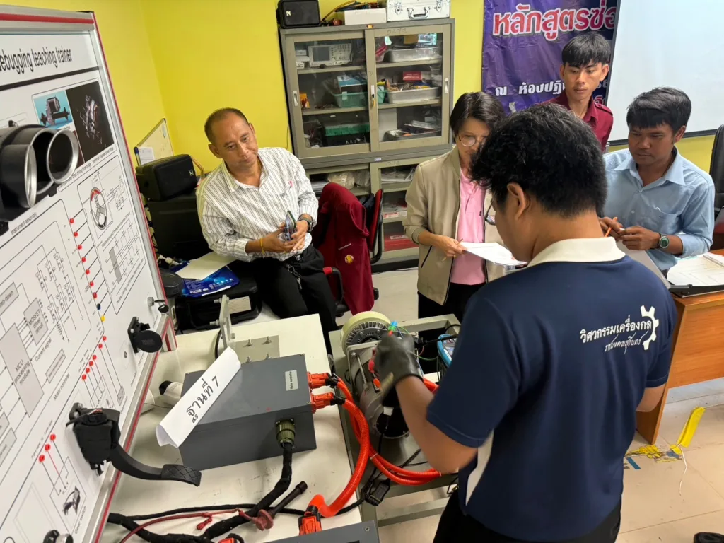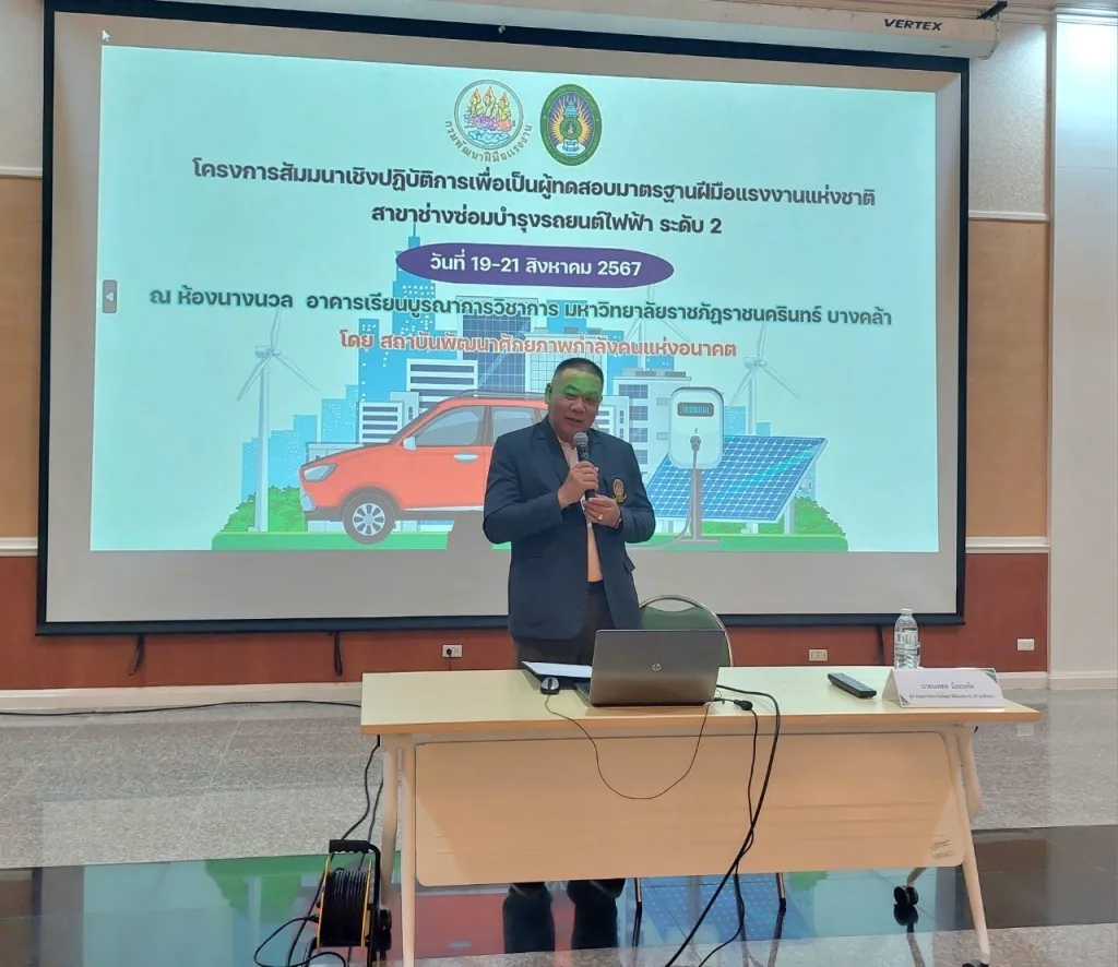 วันที่ 19-21 สิงหาคม 2567 มหาวิทยาลัยเทคโนโลยีราชมงคลอีสาน โดย รองศาสตราจารย์ ดร.โฆษิต ศรีภูธร อธิการบดี ส่งอาจารย์ผู้มีความเชี่ยวชาญด้าน EV เข้าร่วมโครงการสัมมนาเชิงปฏิบัติการเพื่อเป็นผู้ทดสอบมาตรฐานฝีมือแรงงานแห่งชาติ สาขาช่างซ่อมบำรุงรถยนต์ไฟฟ้า ระดับ 2 ณ มหาวิทยาลัยราชภัฏราชนครินทร์ บางคล้า เพื่อเตรียมเป็นผู้ทดสอบมาตรฐานฝีมือแรงงานของประเทศให้มีมาตรฐานเทียบเท่าสากล