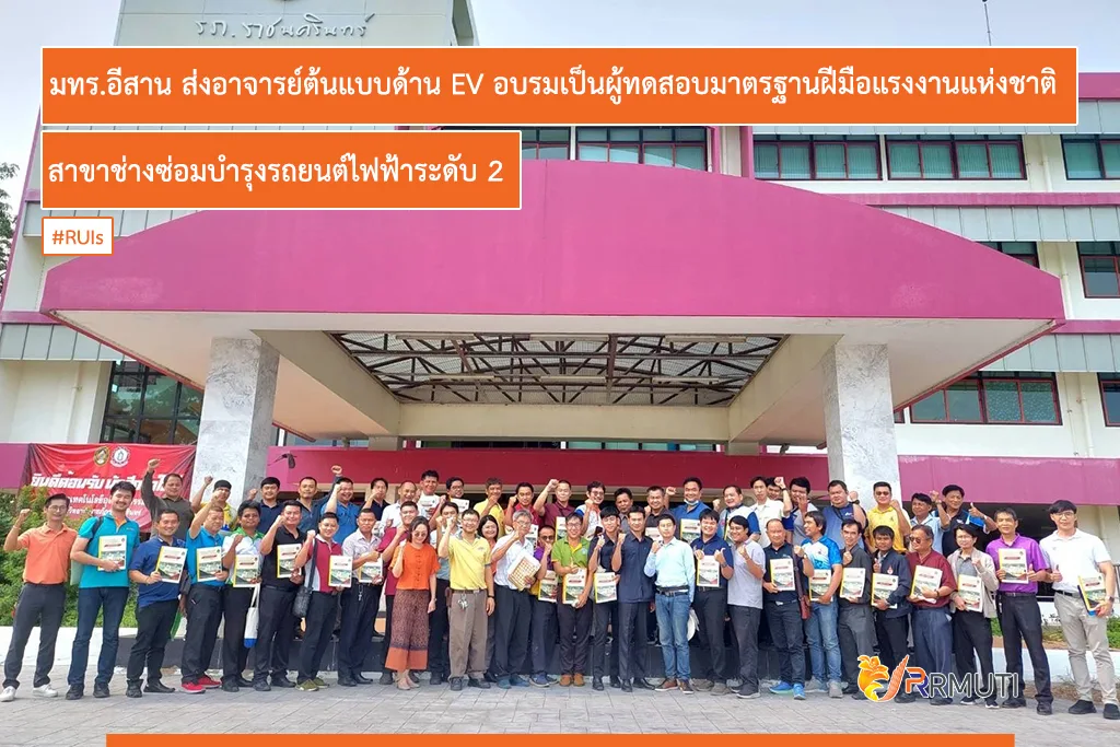 มหาวิทยาลัยเทคโนโลยีราชมงคลอีสาน เดินหน้าขับเคลื่อนยุทธศาสตร์ด้าน EV ในทุกมิติ เพื่อเตรียมผลิตกำลังแรงงานสมรรถนสูงตอบรับนโยบายชาติและนโยบาย อว. For EV ภายใต้การนำของนางสาว ศุภมาส อิศรภักดี รัฐมนตรีว่าการกระทรวงการอุดมศึกษา วิทยาศาสตร์ วิจัยและนวัตกรรม ทั้งนี้ หลักสูตรการฝึกอบรม “การซ่อมบำรุงรถยนต์ไฟฟ้า” เป็นการเตรียมความพร้อมกับการเปลี่ยนแปลงทางเทคโนโลยี และเป็นหนึ่งในอุตสาหกรรม S-CURVE 10 อุตสาหกรรมแห่งอนาคต จึงเป็นการอบรมเพื่อเตรียมกำลังแรงงาน รวมถึงบุคลากรทางการศึกษาเพื่อนำความรู้ไปต่อยอดในการผลิตกำลังแรงงานในอนาคต สำหรับผู้ที่จะทำหน้าที่เป็นผู้ทดสอบมาตรฐานฝีมือแรงงาน ที่มีคุณสมบัติครบถ้วนตามประกาศคณะกรรมการส่งเสริมการพัฒนาฝีมือแรงงาน เรื่องหลักเกณฑ์ วิธีการ เงื่อนไขการขออนุญาต การออกใบอนุญาต การเพิกถอนใบอนุญาตเป็นผู้ดำเนินการทดสอบมาตรฐานฝีมือแรงงานและคุณสมบัติของผู้ทดสอบมาตรฐานฝีมือแรงงาน โดยในครั้งนี้ มทร.อีสาน ส่งผู้อาจารย์ต้นแบบด้าน EV จำนวน 5 ท่าน เข้ารับการอบรม ได้แก่
