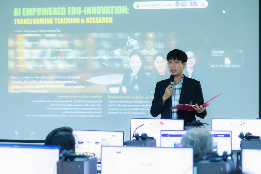 ทั้งนี้ ได้รับเกียรติจาก รองศาสตราจารย์ ดร.ปณิตา วรรณพิรุณ ผู้ช่วยศาสตราจารย์ ดร.ณัฐภัทร แก้วรัตนภัทร์ และอาจารย์ ดร.พงศธร ปาลี เป็นวิทยากรให้ความรู้ทั้งภาคบรรยายและภาคปฏิบัติแก่ผู้เข้าร่วมโครงการ โดยภาคบรรยาย เป็นการบรรยายในหัวข้อ จุดประกายการใช้เทคโนโลยีเป็นฐานการคิดเชิงนวัตกรรม (Innovative Thinking) เพื่อการจัดการเรียนการสอนโดยใช้ปัญญาประดิษฐ์ในยุคดิจิทัล และในส่วนของภาคปฏิบัตินั้น มีทั้งหมด 5 หัวข้อ ได้แก่ การฝึกปฏิบัติการเครื่องมือสร้างสรรค์เนื้อหาการสอนด้วยเทคโนโลยีปัญญาประดิษฐ์ (Generative AI) ผู้ช่วยเสมือน, การฝึกปฏิบัติการสร้างสื่อด้วยเทคโนโลโลยีปัญญาประดิษฐ์ (Generative AI) สำหรับการสร้างสื่อ ภาพ เสียง, การสร้างสื่อการสร้างนวัตกรรมการเรียนรู้ในยุคดิจิทัลสำหรับครูมืออาชีพ, การใช้ ChatGPT ในการออกแบบเนื้อหาและการเขียนบทวิดีโอ และการสาธิตการใช้ Midjourney ในการออกแบบ AI Teacher Avatar, การใช้งาน AI Web Application เช่น D-ID และ Pictory ในการสร้างเนื้อหาวิดีโอสื่อการสอน และการใช้ ChatGPT + Gemini ในการสร้างวิดีโอสื่อการสอน โดยมีคณาจารย์จาก มทร.อีสาน ศูนย์กลางนครราชสีมา วิทยาเขตขอนแก่น วิทยาเขตสกลนคร และวิทยาเขตสุรินทร์ เข้าร่วมอบรมแบบ Onsite จำนวน 25 คน แบบ Online จำนวน 88 คน รวมทั้งสิ้น จำนวน 113 คน