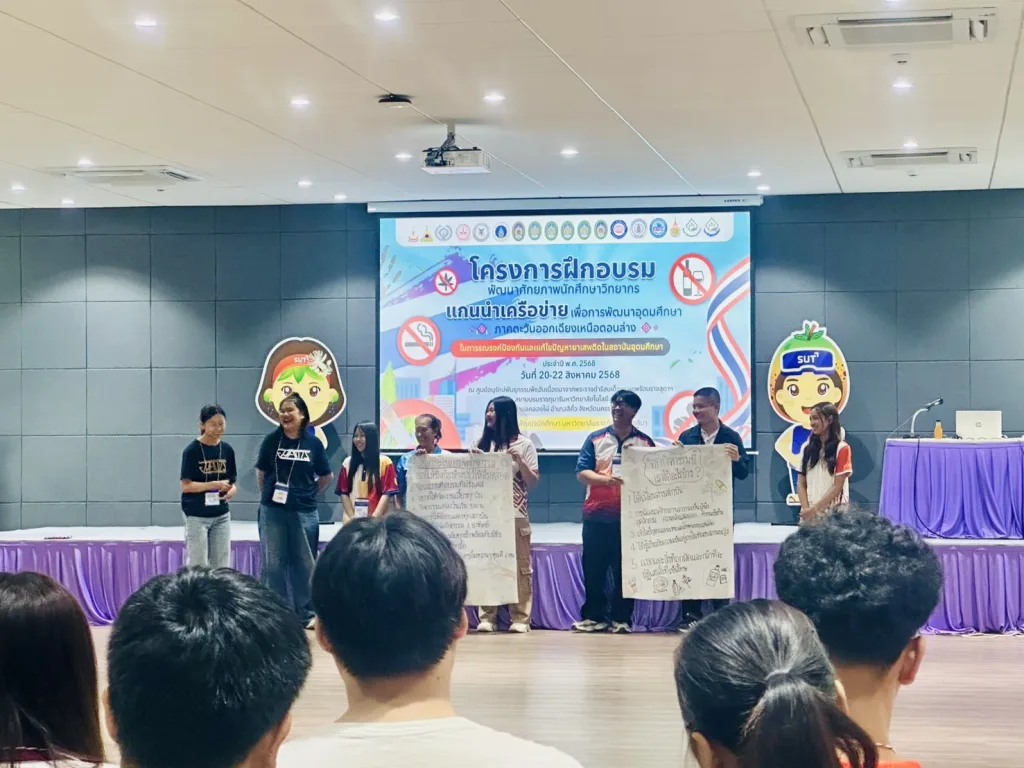 ทั้งนี้ได้มีกิจกรรมการบรรยาย เรื่อง การป้องปรามและการรณรงค์เกี่ยวกับปัญหาด้านยาเสพติด วิทยากรโดย สำนักงานป้องกันและปราบปรามยาเสพติด ภาค 3 นำเสนอผลการดำเนินงานการรณรงค์ป้องและแก้ไขปัญหายาเสพติดในสถาบันอุดมศึกษา การบรรยาย เรื่อง บทบาทหน้าที่ของวิทยากรกลุ่มแกนนำเครือข่ายเพื่อการพัฒนาอุดมศึกษา ภาคตะวันออกเฉียงเหนือตอนล่าง วิทยากรโดย นางสาวสุนิศา โสบกระโทก เจ้าพนักงานสาธารณสุขชำนาญงาน ศึกษาดูงานด้านการบำบัดผู้เสพยาเสพติดและการฝึกอาชีพให้ผู้ต้องขัง ณ ทัณฑสถานหญิงนครราชสีมา ตำบลคลองไผ่ อำเภอสีคิ้ว จังหวัดนครราชสีมา การแบ่งกลุ่มฝึกภาคปฏิบัติ เรื่อง “ทำไมเราต้องอาสามาเป็นกลุ่มแกนนำ”