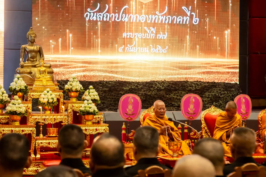 ในโอกาสนี้ พลโท บุญสิน พาดกลาง แม่ทัพภาคที่ 2 ร่วมพิธีสงฆ์อุทิศส่วนกุศลแก่กำลังพลที่เสียชีวิตจากเหตุการณ์ที่ผ่านมาและผู้ล่วงลับในอดีต ซึ่งถือเป็นประเพณีสำคัญที่กองทัพสืบต่อกันมา พร้อมกล่าวขอบคุณประชาชนที่ร่วมส่งคำอวยพรในโอกาสครบรอบสถาปนาหน่วย โดยยืนยันว่า แม้ปีนี้จะเป็นปีสุดท้ายของการรับราชการ จะยังคงอุทิศตนเพื่อประเทศชาติต่อไปในบทบาทใหม่ที่เหมาะสม ทั้งยังได้ขอบคุณนายกรัฐมนตรีที่มอบนโยบายชัดเจน อันสะท้อนถึงความร่วมมือระหว่างกองทัพและรัฐบาลในการพิทักษ์อธิปไตย พร้อมทิ้งท้ายว่า ตลอดระยะเวลาที่ผ่านมาได้ปฏิบัติหน้าที่อย่างเต็มกำลังความสามารถ และฝากความหวังให้กองทัพภาคที่ 2 ยืนหยัดรักษาอธิปไตยของชาติ รวมถึงขับเคลื่อนภารกิจร่วมกับหน่วยงานทุกภาคส่วนจนบรรลุเป้าหมายเพื่อความมั่นคงของประเทศ