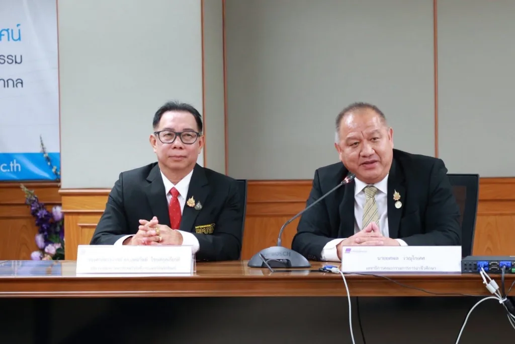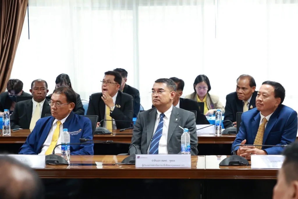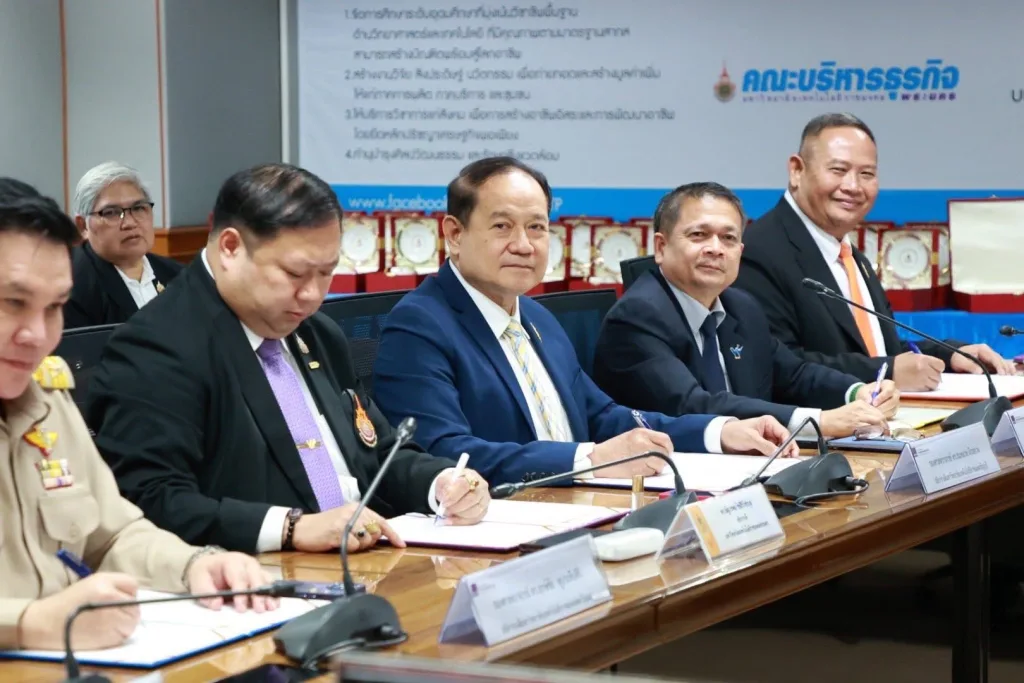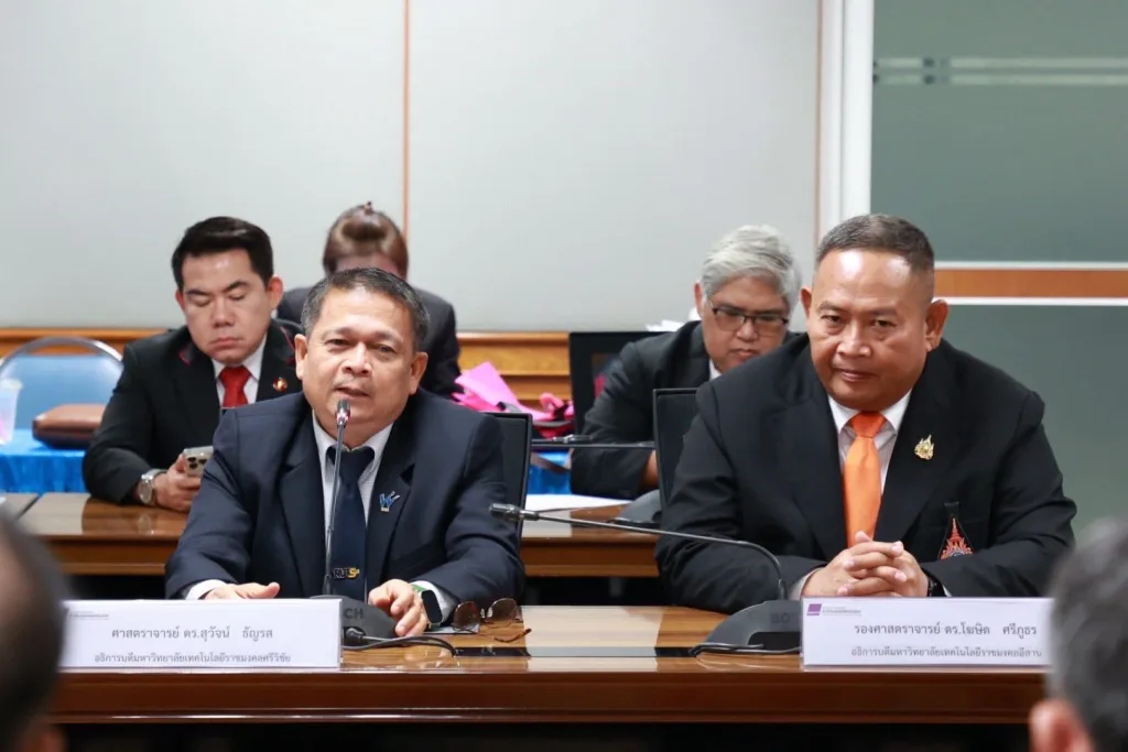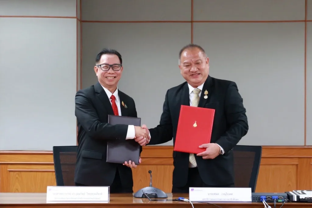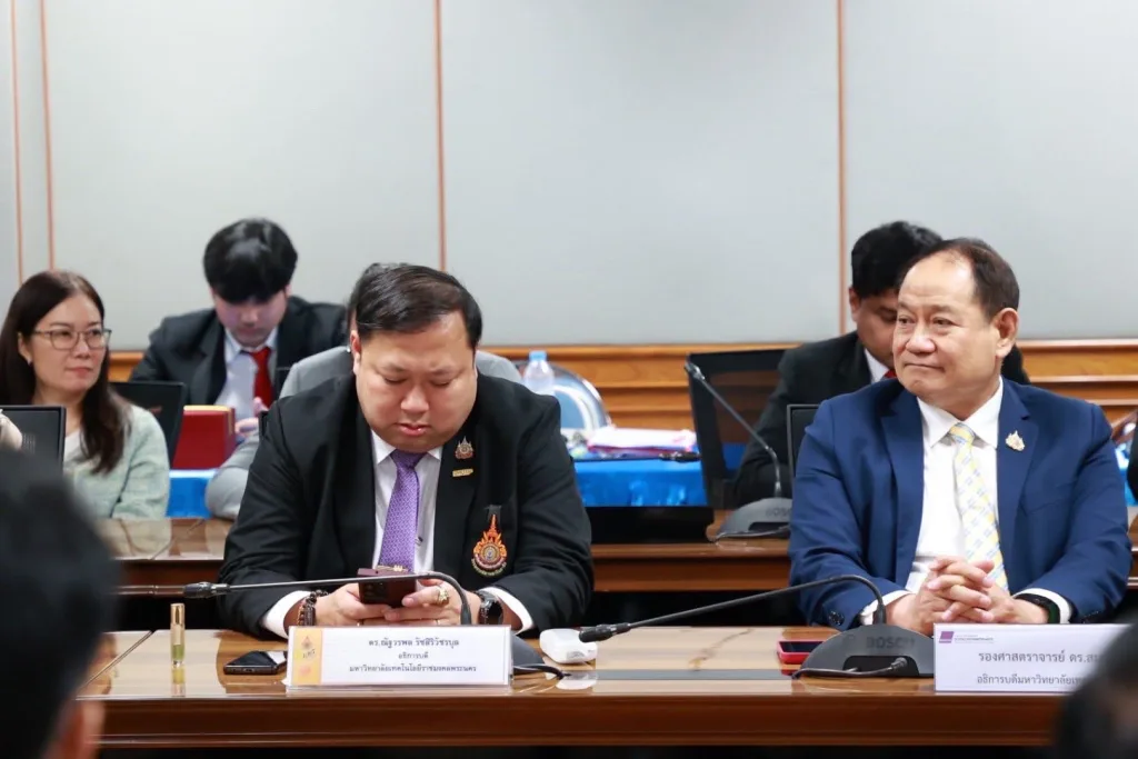 วันที่ 22 กันยายน พ.ศ. 2568 รองศาสตราจารย์ ดร.โฆษิต ศรีภูธร รักษาราชการแทนอธิการบดี มทร.อีสาน และตำแหน่งเลขานุการที่ประชุมคณะกรรมการอธิการบดีมหาวิทยาลัยเทคโนโลยีราชมงคล พร้อมผู้บริหาร เข้าร่วมพิธีลงนามความร่วมมือทางวิชาการ (MOU) ระหว่างมหาวิทยาลัยเทคโนโลยีราชมงคล 9 แห่ง กับสถาบันการอาชีวศึกษา สังกัดคณะกรรมการการอาชีวศึกษา ณ ห้องประชุมสัญจร อาคารมงคลอาภา ชั้น 2 คณะบริหารธุรกิจ มทร.พระนคร (ศูนย์พณิชยการพระนคร) บันทึกข้อตกลงฉบับนี้มีเป้าหมายเพื่อสร้างความร่วมมือในการส่งเสริมและพัฒนาศักยภาพทางวิชาการสายอาชีพ การวิจัย การบริการวิชาการ และการจัดการเรียนการสอนให้สอดคล้องกับความต้องการของสถานประกอบการและสังคม อีกทั้งยังมุ่งสนับสนุนการทำวิจัยร่วมระหว่างคณาจารย์และบุคลากรของทั้งสองฝ่าย รวมถึงการใช้ทรัพยากรร่วมกันอย่างมีประสิทธิภาพ ตลอดจนพัฒนาระบบคลังหน่วยกิตและการเทียบโอนผลการเรียนเพื่อให้นักเรียน นักศึกษาสามารถลงทะเบียนข้ามสถาบันได้ นอกจากนี้ยังเป็นการสร้างความเชื่อมโยงทางการศึกษา (Education pipeline) เพื่อเปิดโอกาสให้นักเรียนจากสถาบันการอาชีวศึกษาได้ศึกษาต่อใน มทร. การยกระดับคุณวุฒิการศึกษาของครูและคณาจารย์ การจัดทำหลักสูตรระยะสั้นเพื่อยกระดับเศรษฐกิจฐานรากและสร้างผู้ประกอบการในรูปแบบการเรียนรู้ตลอดชีวิต รวมถึงกิจกรรมด้านอื่น ๆ ตามที่ทั้งสองฝ่ายเห็นชอบร่วมกัน ความร่วมมือดังกล่าวมีผลบังคับใช้เป็นเวลา 3 ปี และสามารถขยายหรือปรับปรุงเพิ่มเติมได้ตามความเหมาะสม โดยถือเป็นก้าวสำคัญในการเชื่อมโยงการศึกษาระหว่างมหาวิทยาลัยเทคโนโลยีราชมงคลทั้ง 9 แห่ง และสถาบันการอาชีวศึกษา เพื่อร่วมกันผลิตและพัฒนากำลังคนที่มีคุณภาพ ตอบโจทย์ความต้องการของประเทศอย่างยั่งยืน