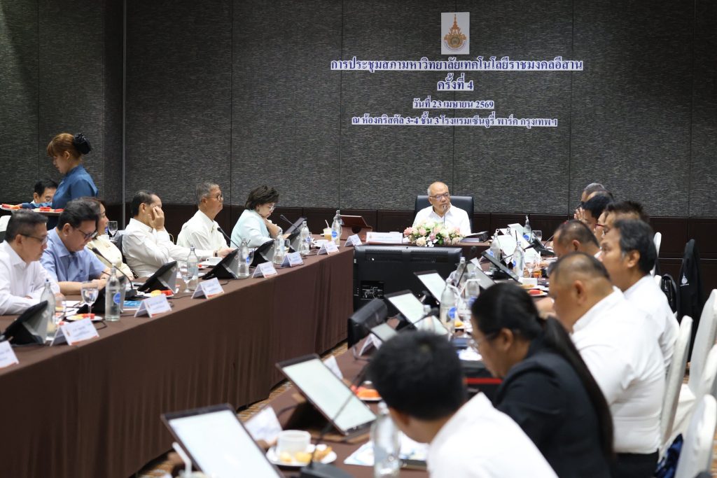 วันที่ 23 เมษายน 2569 มหาวิทยาลัยเทคโนโลยีราชมงคลอีสาน จัดการประชุมสภามหาวิทยาลัยเทคโนโลยีราชมงคลอีสาน ครั้งที่ 4/2569 โดยมี นายฉัตรชัย พรหมเลิศ นายกสภามหาวิทยาลัยเทคโนโลยีราชมงคลอีสาน เป็นประธานการประชุม พร้อมด้วย นางสุวรรณี คำมั่น อุปนายกสภามหาวิทยาลัยเทคโนโลยีราชมงคลอีสาน, รองศาสตราจารย์ ดร.โฆษิต ศรีภูธร อธิการบดีมหาวิทยาลัยเทคโนโลยีราชมงคลอีสาน, กรรมการสภามหาวิทยาลัยผู้ทรงคุณวุฒิ, กรรมการสภามหาวิทยาลัยฯ และที่ปรึกษามหาวิทยาลัยฯ เข้าร่วมประชุมอย่างพร้อมเพรียง ซึ่งการประชุมครั้งนี้จัดขึ้นเพื่อกำหนดนโยบาย ทิศทาง และพิจารณาประเด็นสำคัญด้านการบริหารจัดการ และการพัฒนามหาวิทยาลัยให้เป็นไปตามพันธกิจและยุทธศาสตร์ที่กำหนดไว้ โดยจัดในรูปแบบ Hybrid Meeting ควบคู่ระหว่างการประชุม ณ สถานที่จริง และการประชุมผ่านระบบออนไลน์ Zoom Meeting เพื่ออำนวยความสะดวกแก่กรรมการสภามหาวิทยาลัยฯ และผู้ที่เกี่ยวข้อง โดยจัดขึ้น ณ ห้องประชุมคริสตัล 3-4 ชั้น 3 โรงแรมเซ็นจูรี พาร์ค กรุงเทพมหานคร รวมถึงการเข้าร่วมผ่านระบบออนไลน์