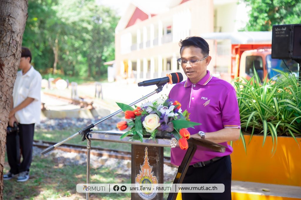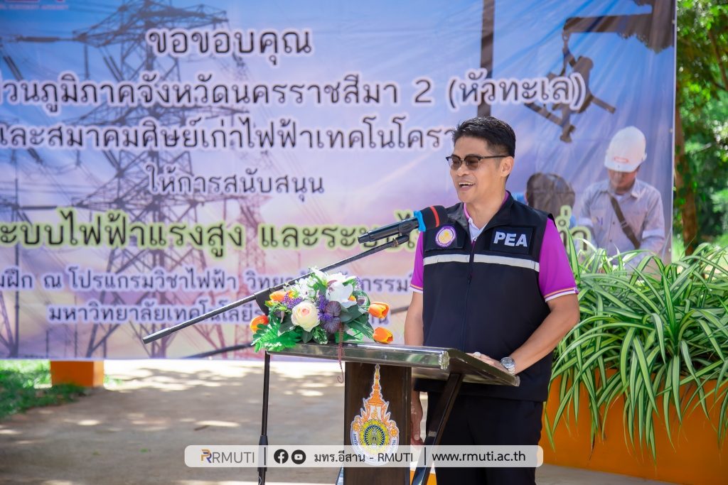 ด้าน รองศาสตราจารย์ ดร.โฆษิต ศรีภูธร อธิการบดี มทร.อีสาน กล่าวว่า มหาวิทยาลัยเทคโนโลยีราชมงคลอีสาน มีความยินดีเป็นอย่างยิ่งที่ได้มีโอกาสต้อนรับคณะผู้บริหารและบุคลากรการไฟฟ้าส่วนภูมิภาคในการดำเนินกิจกรรมส่งมอบพลังงานแสงอาทิตย์และสนามฝึกด้านระบบไฟฟ้า ทั้งนี้ มทร.อีสาน เป็นสถาบันการศึกษาที่เปิดสอนตั้งแต่ระดับประกาศนียบัตรจนถึงระดับปริญญาเอก ซึ่งเน้นการสร้างนักศึกษาให้เป็นผู้นำ สร้างนักปฏิบัติทักษะสูง สร้างนวัตกร และสร้างผู้ประกอบการด้วยเทคโนโลยีและนวัตกรรม การฝึกทักษะให้นักศึกษาจากการฝึกปฏิบัติจริง มีสื่อการเรียนการสอนของจริง และการฝึกประสบการณ์จากสถานประกอบการอย่างระบบสหกิจศึกษา ทำให้นักศึกษา มทร.อีสาน มีทักษะและฝีมือเป็นที่ยอมรับในตลาดแรงงานระดับสากล โดยต้องขอบคุณการไฟฟ้าส่วนภูมิภาคและสมาคมศิษย์เก่าไฟฟ้าเทคโนโคราช ที่ได้ให้การสนับสนุนระบบพลังงานแสงอาทิตย์ และสนามฝึกด้านระบบไฟฟ้า ซึ่งก่อให้เกิดประโยชน์ต่อนักศึกษาอย่างยิ่งร่วมถึงบุคลากรภายนอกที่สนใจต่อไป ทั้งนี้ หากในอนาคตการไฟฟ้าส่วนภูมิภาค มีการจัดโครงการหรือกิจกรรมต่าง ๆ มทร.อีสาน ก็พร้อมจะสนับสนุนกิจกรรมที่เกิดขึ้นอย่างเต็มที่
